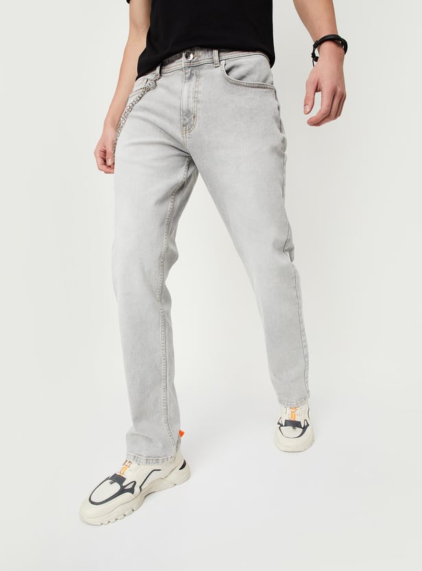 These regular-fit jeans with a washed surface, belt loop waist, and 5 pockets will jazz up your denim wardrobe. These jeans offer plenty of modern styles, ready to mix and match with anything in your wardrobe to lift your look.
