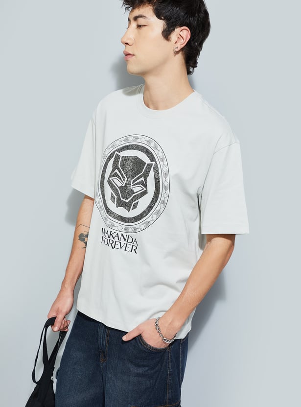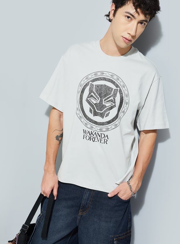 Elevate your casual wardrobe with this Black Panther print T-shirt, featuring a classic crew neck and half sleeves for everyday comfort and style. The soft fabric ensures ease of movement, making it a go-to for daily wear