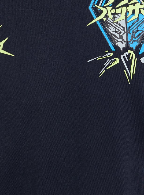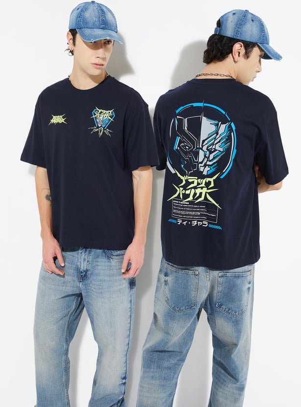 Elevate your casual wardrobe with this Black Panther print T-shirt, featuring a classic crew neck and half sleeves for everyday comfort and style. The soft fabric ensures ease of movement, making it a go-to for daily wear