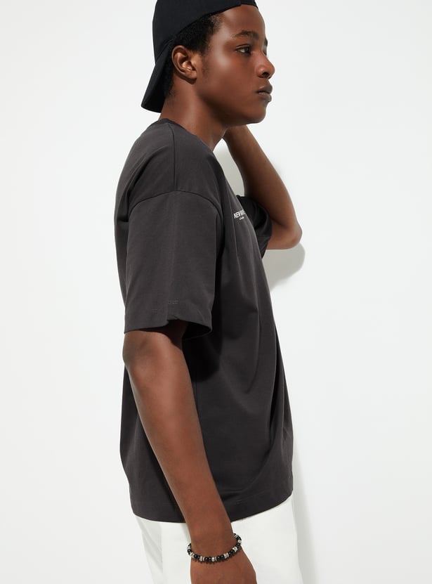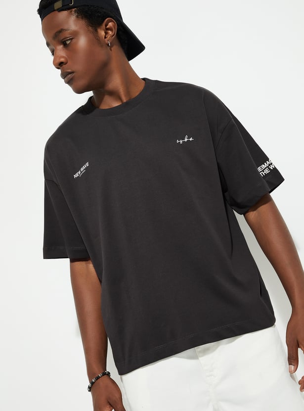 Elevate your street style game with this printed T-shirt, injecting a dose of urban flair into your wardrobe. Boasting a classic crew neck, short sleeves, and a boxy fit profile for that roomy comfort.