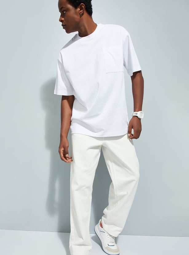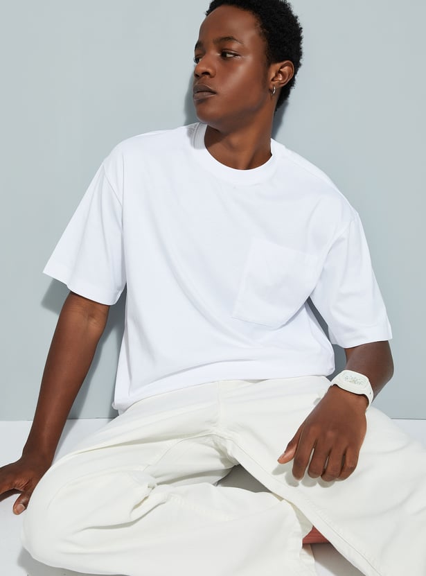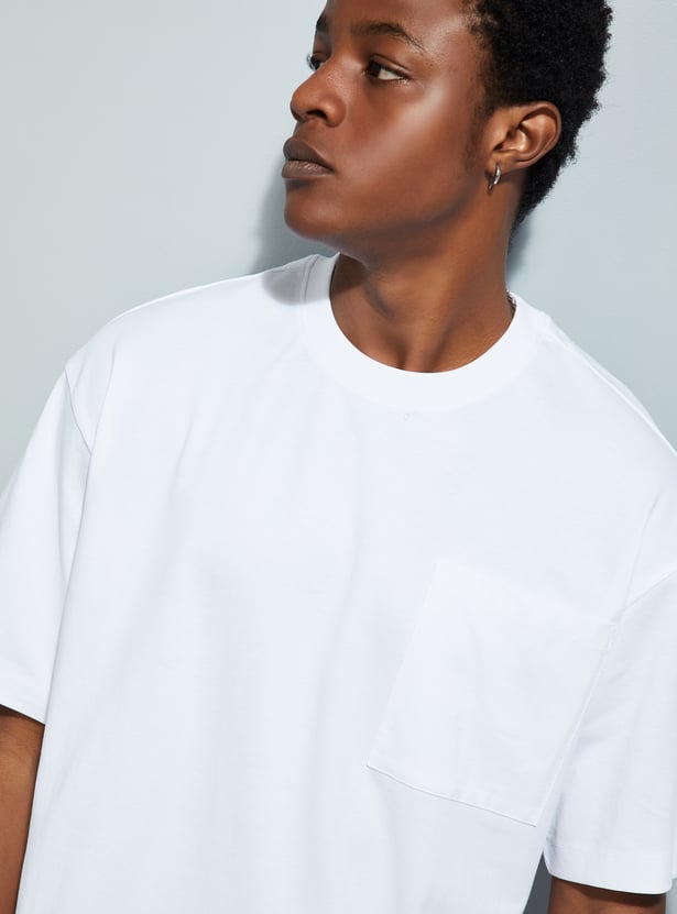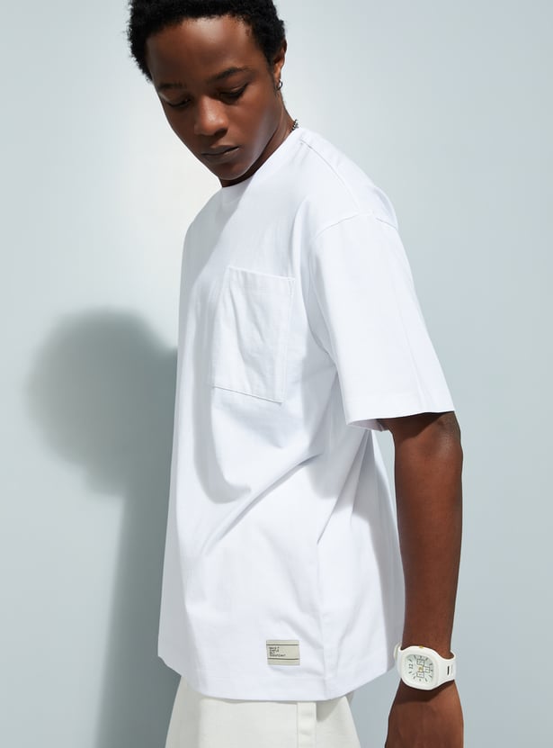 Upgrade your casual wardrobe with this solid-finish T-shirt. Designed with a classic crew neck, short sleeves, and a patch pocket, its boxy fit profile delivers that perfect urban vibe.