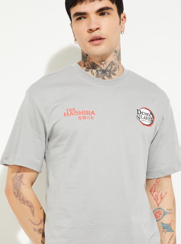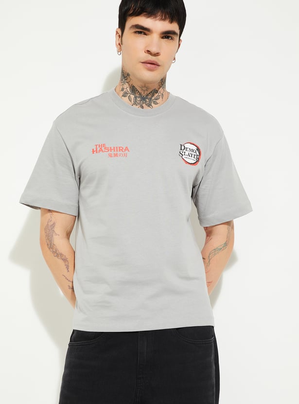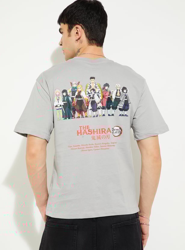 Showcase your love for anime with this Hashira print oversized T-shirt. Featuring a classic crew neck and half sleeves, it offers relaxed comfort with bold graphics inspired by the iconic Hashira characters.
