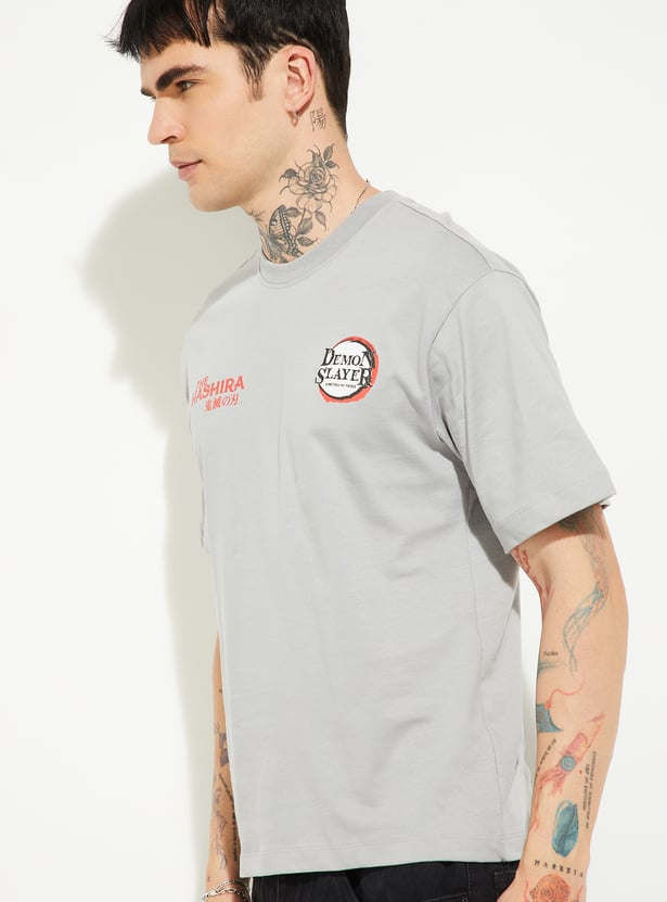 URB_N Men Demon Slayer Print Oversized T-shirt