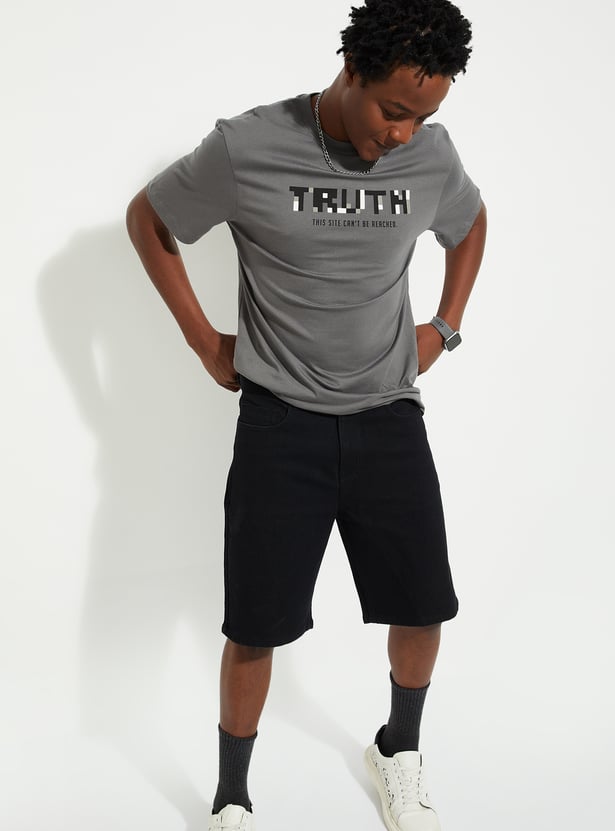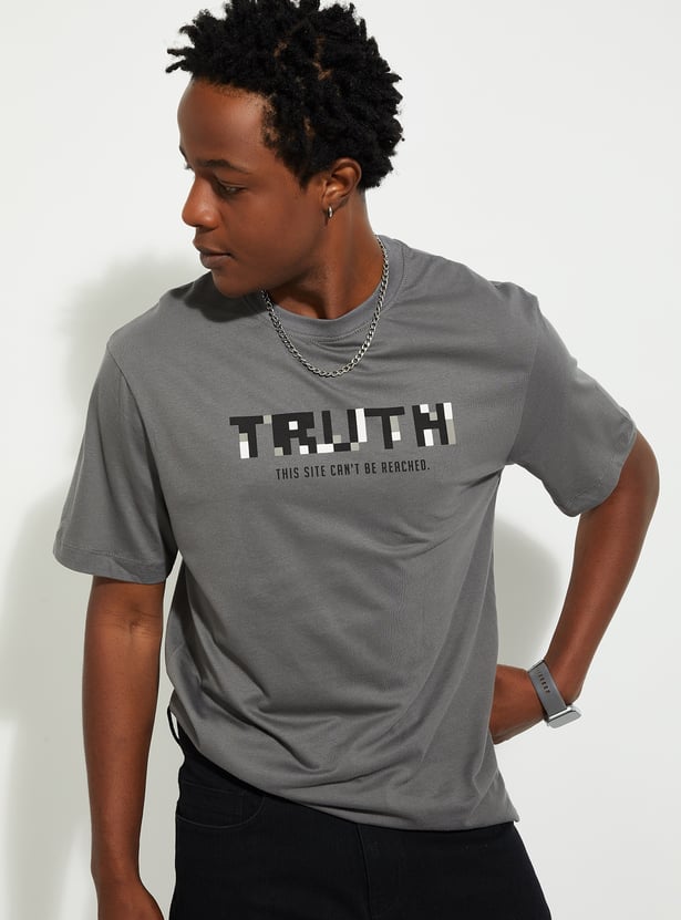 Level up your streetwear game with this must-have T-shirt. Rocking a bold graphic print on the chest, this tee makes a statement with ease. The classic crew neck and half sleeves keep it comfy, while the relaxed fit nails that effortlessly cool vibe.