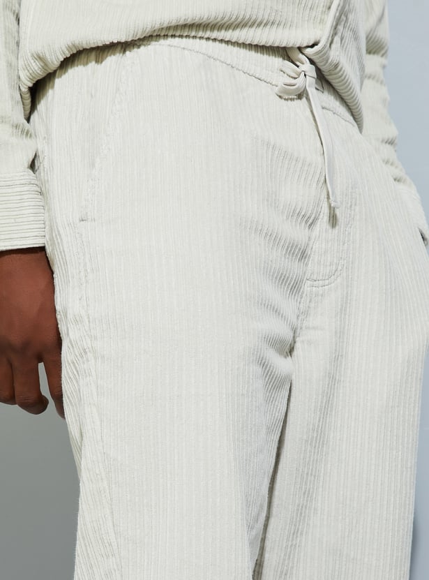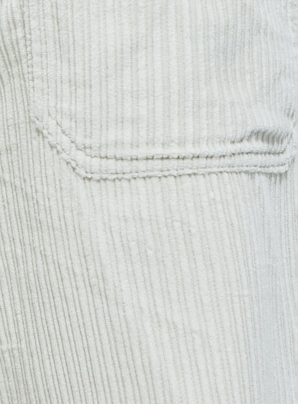 Add this must-have pair of pants to your collection for a stylish and comfortable look. With its corduroy surface, side pockets, back patch pocket, and drawstring waist, it offers both functionality and style.