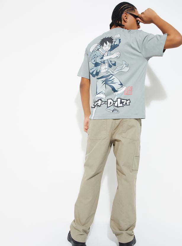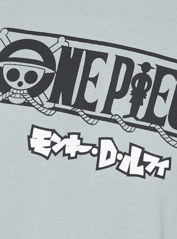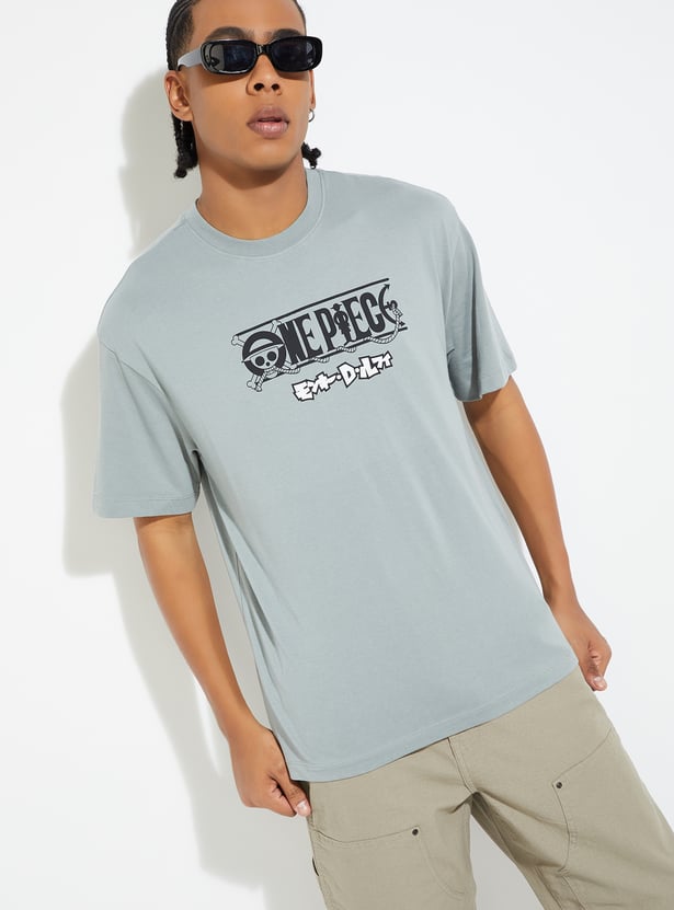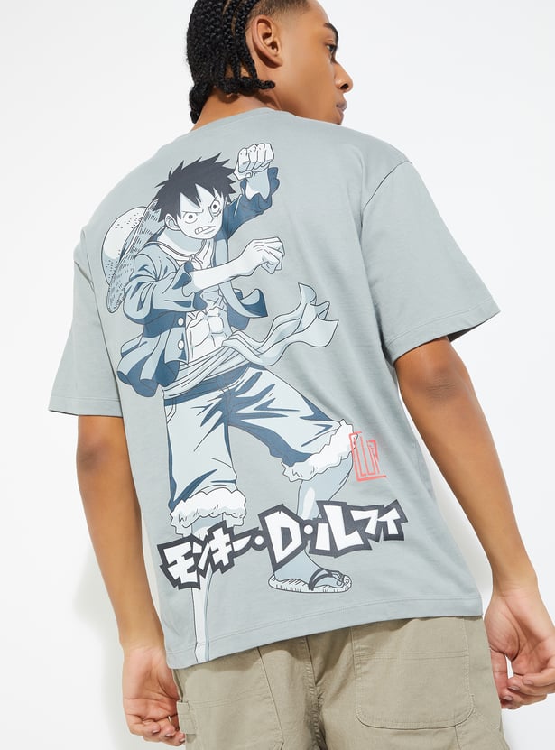 This One Piece print oversized t-shirt offers a fun, bold design with a crew neck and half sleeves. Its relaxed fit makes it perfect for a casual, laid-back look while showcasing your love for the iconic series.