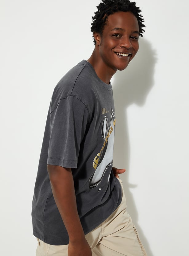 Upgrade your street style with this oversized T-shirt, featuring a crew neck, short sleeves, and a standout graphic print on the front. It’s the perfect blend of laid-back vibes and urban flair, making it a must-have for your casual collection.