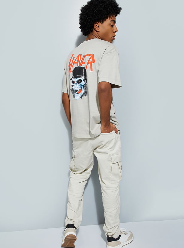 Embrace your street style with this must-have oversized tee. Featuring a classic crew neck, half sleeves, and bold Slayer graphic on the back, it delivers all-day comfort and killer style for those effortless, street-ready vibes.