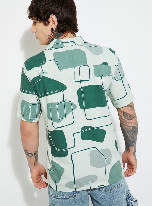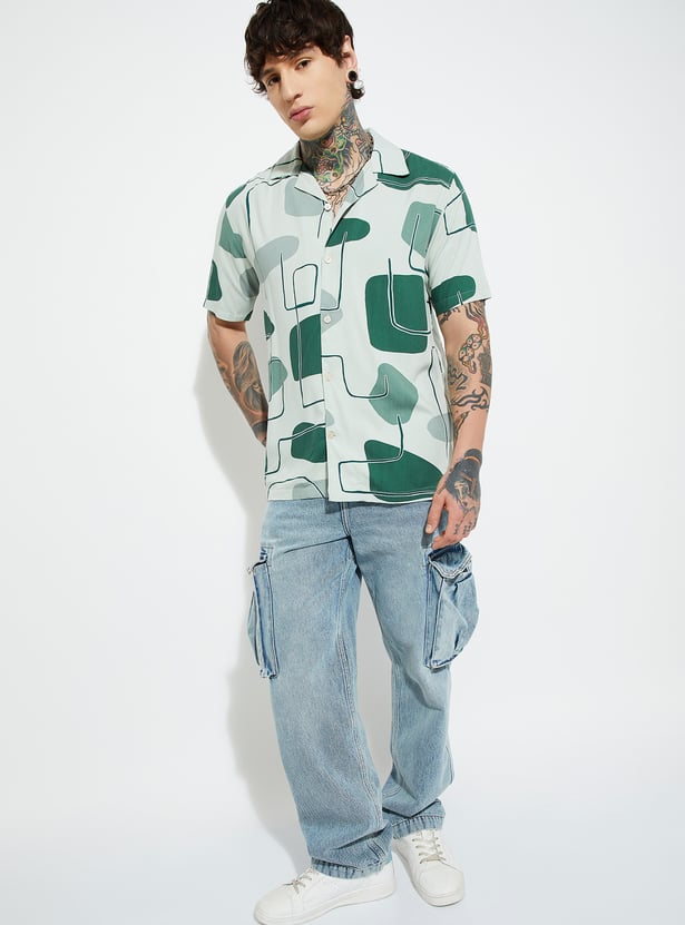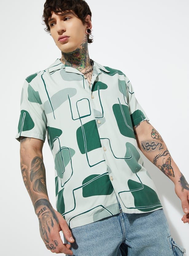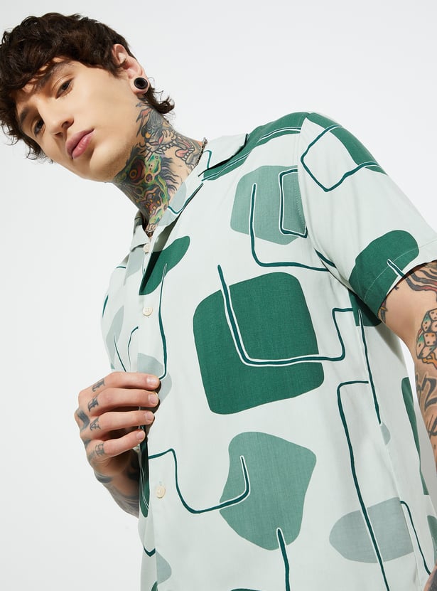 Add a touch of vacation vibes to your wardrobe with this printed regular fit shirt. It features a relaxed resort collar, button placket, and half sleeves—perfect for warm-weather days.