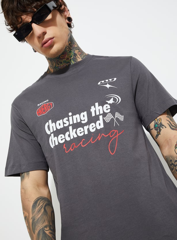 Make a statement in this printed T-shirt that brings a fun twist to everyday style. With a classic crew neck and half sleeves, it's a comfortable go-to for laid-back days.