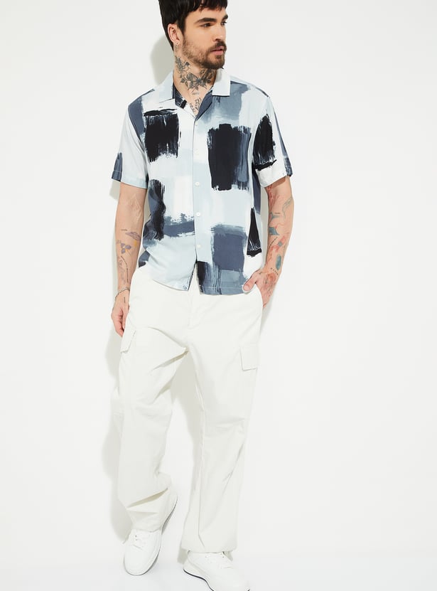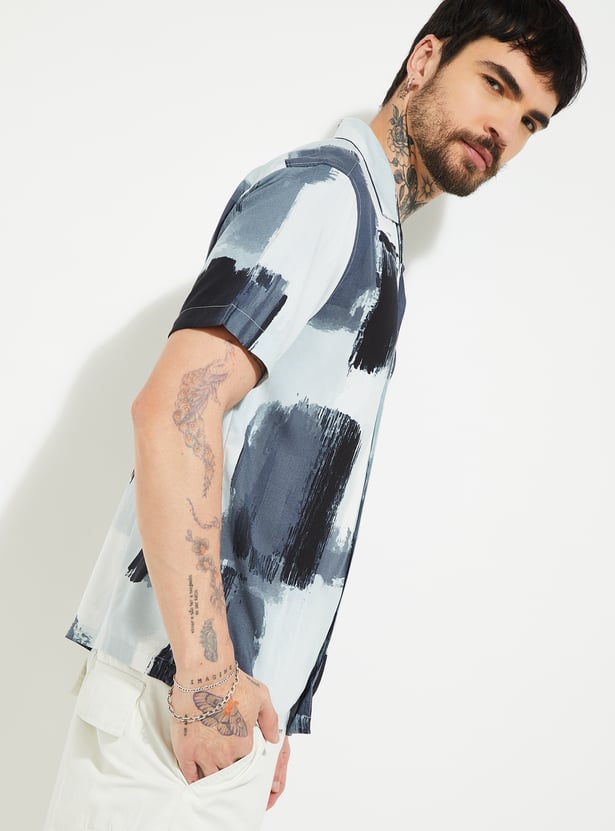 This printed shirt captures effortless, vacation-ready style with its resort collar and half sleeves. The button-down front adds a relaxed yet refined finish, perfect for casual outings.