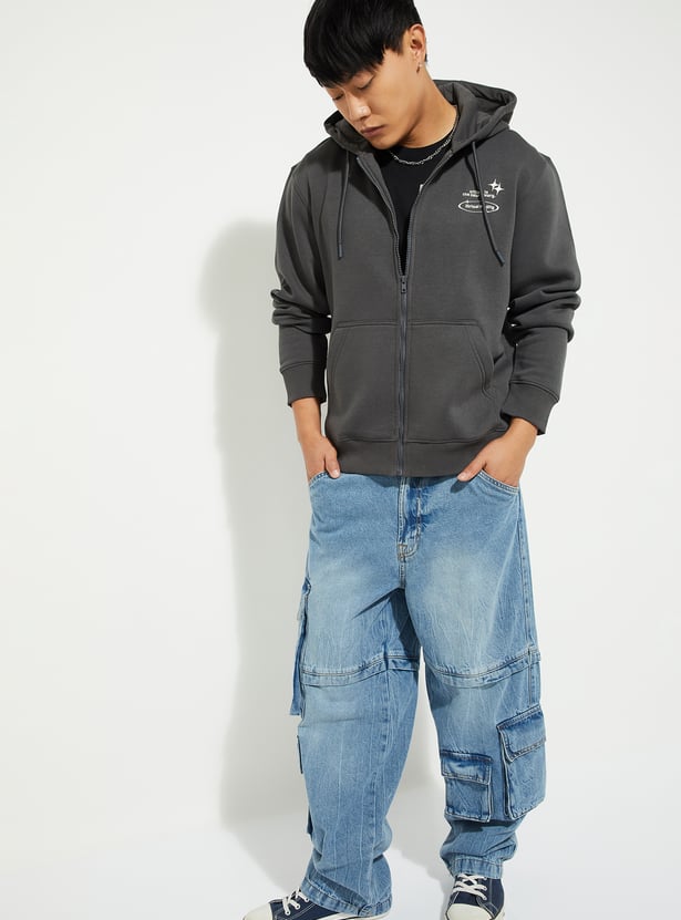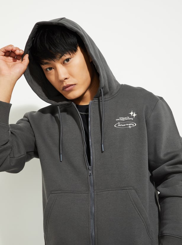 Stay warm and stylish with this printed hooded sweatshirt. Featuring full sleeves, kangaroo pockets, and a ribbed hem, it combines comfort with a casual, trendy look.