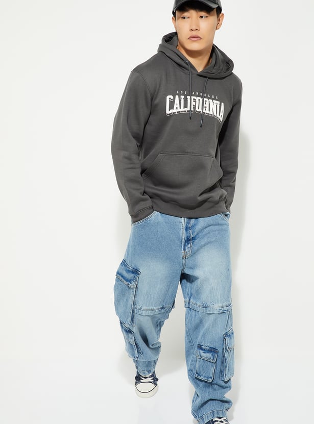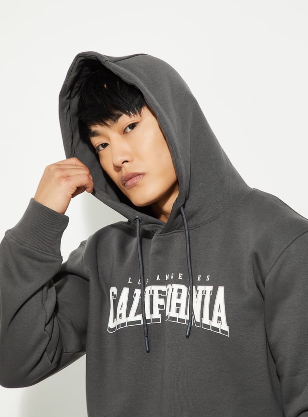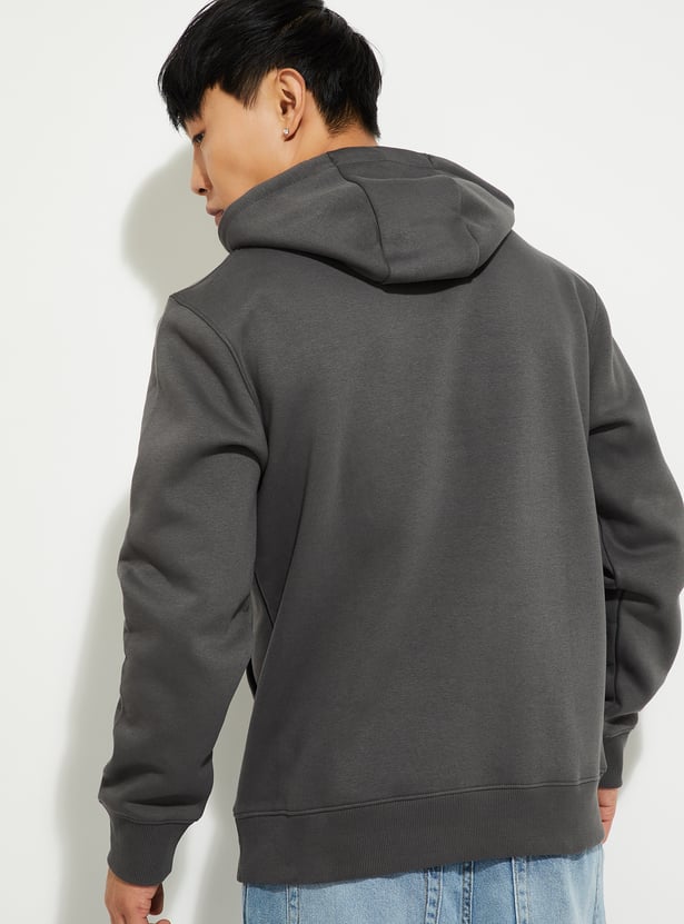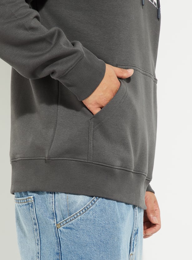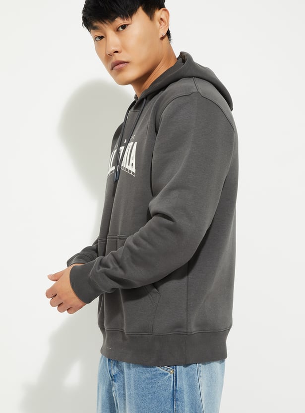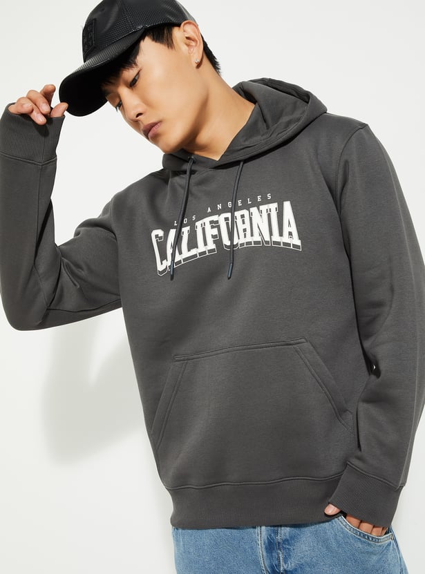 Stay warm and stylish with this printed hooded sweatshirt. Featuring full sleeves, a kangaroo pocket, and a ribbed hem, it combines comfort with a casual, trendy look.