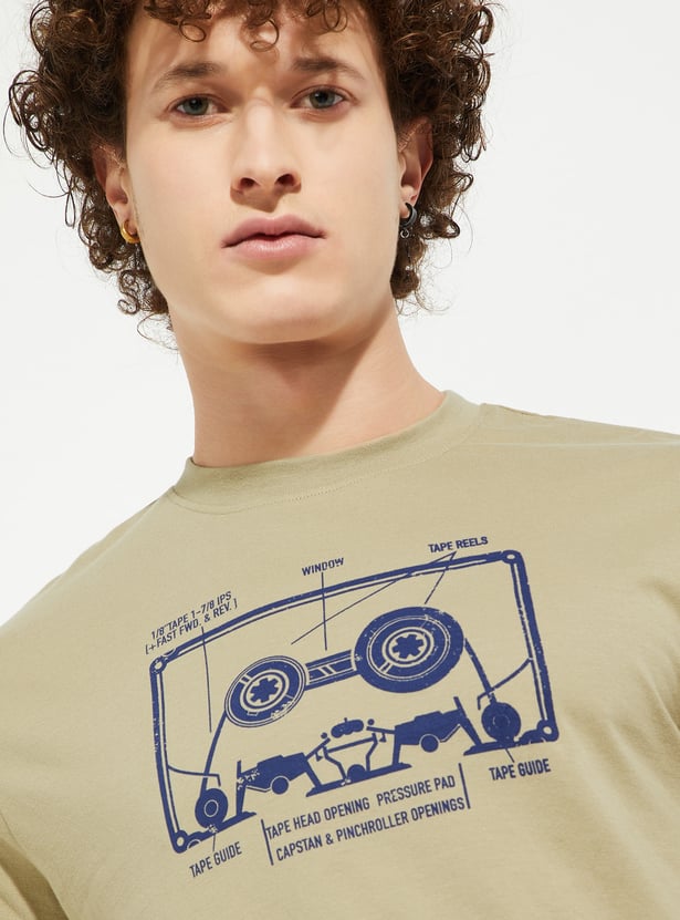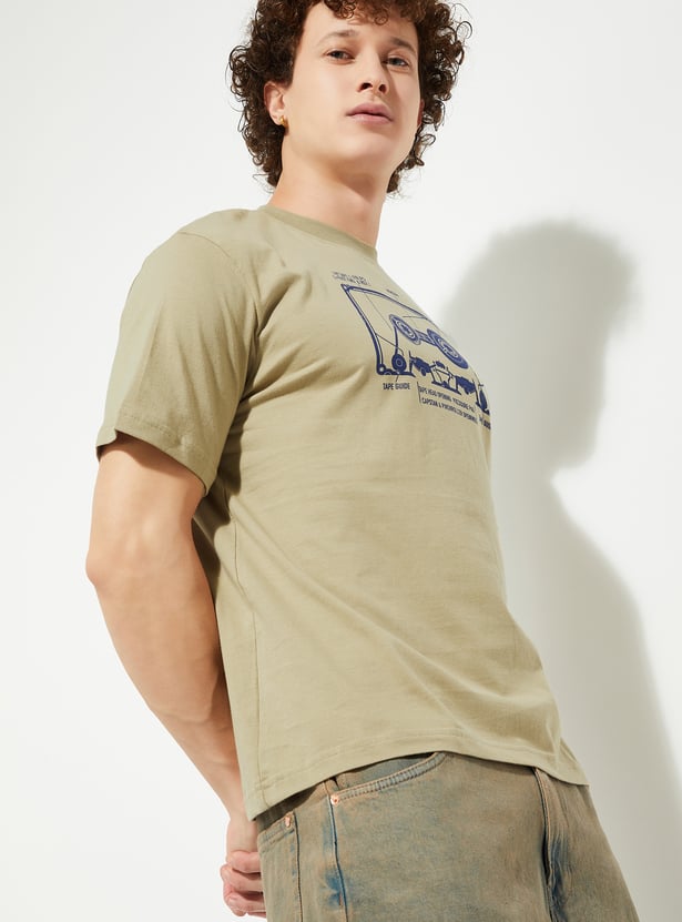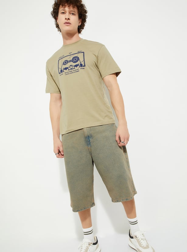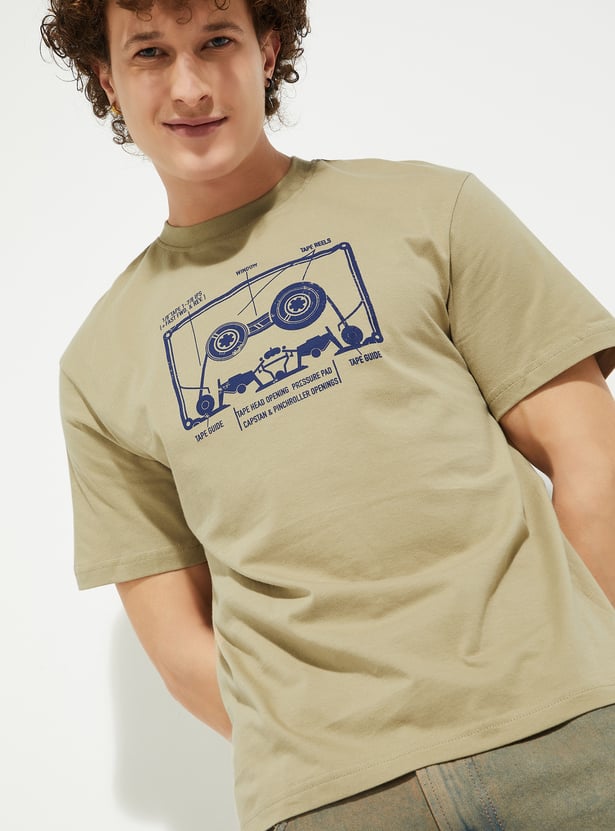 This printed t-shirt is the perfect addition to any casual wardrobe. Featuring a classic crew neck and half sleeves, it offers a comfortable fit while showcasing a bold, eye-catching graphic print.
