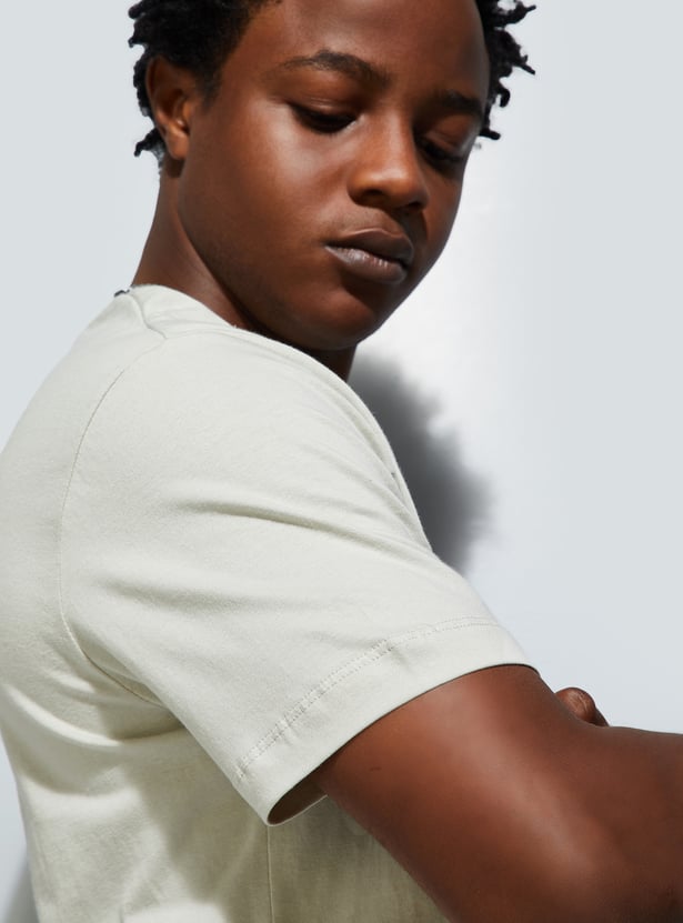 A must-have for your casual wardrobe, this T-shirt features a striking graphic print on the chest. With a crew neck and half sleeves, it provides roomy comfort. Perfect for effortless urban style.