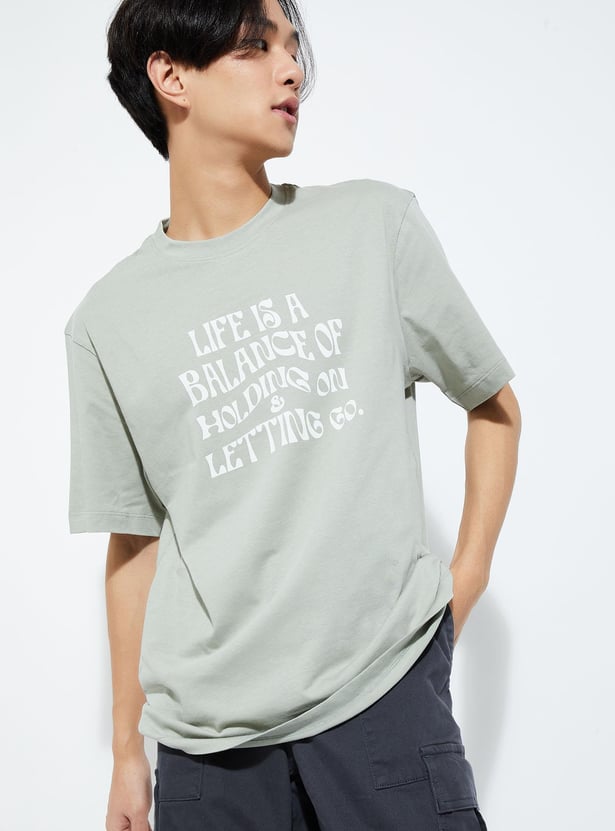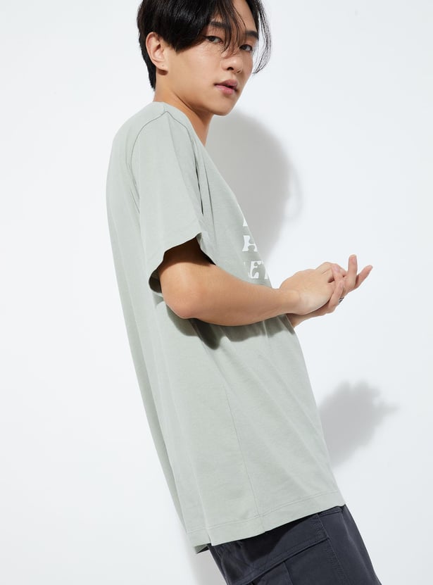 A simple design cut in a regular fit profile, this T-shirt expands your casual rotation. It is designed with a crew neck and half sleeves. The typographic print at the chest adds a stylish look.