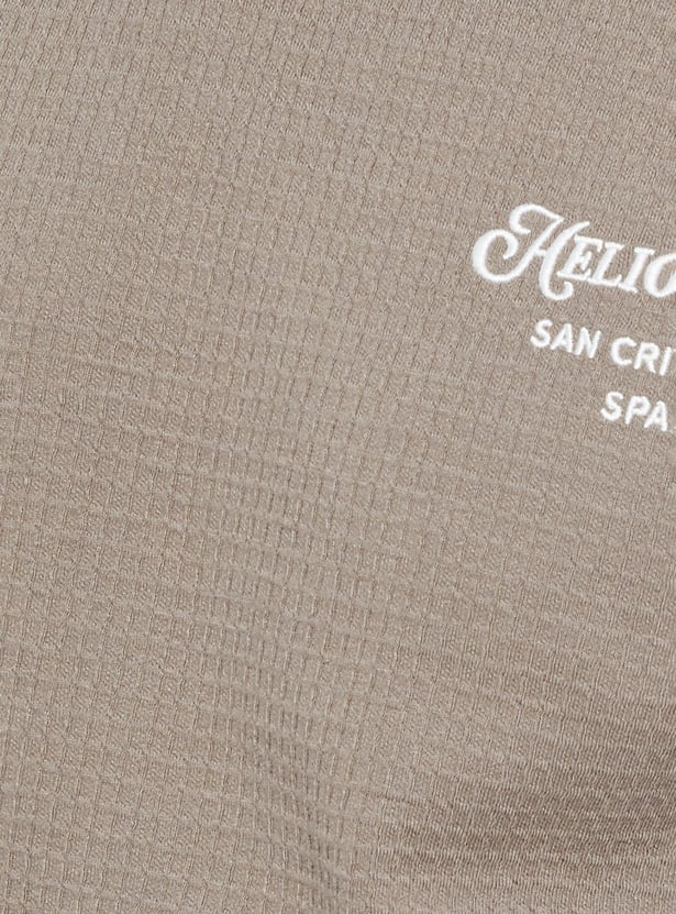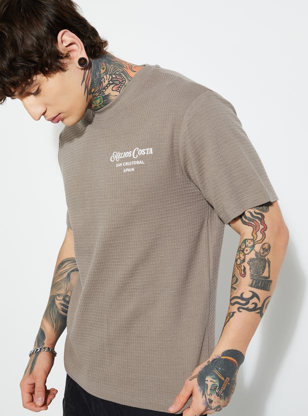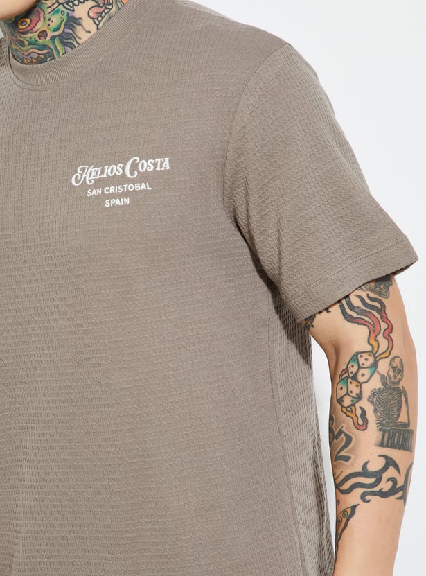 Elevate your basics with this textured T-shirt. Designed with a classic crew neck, embroidered detail, and half sleeves, it adds subtle depth and character to your everyday wardrobe. Comfortable, versatile, and easy to style.
