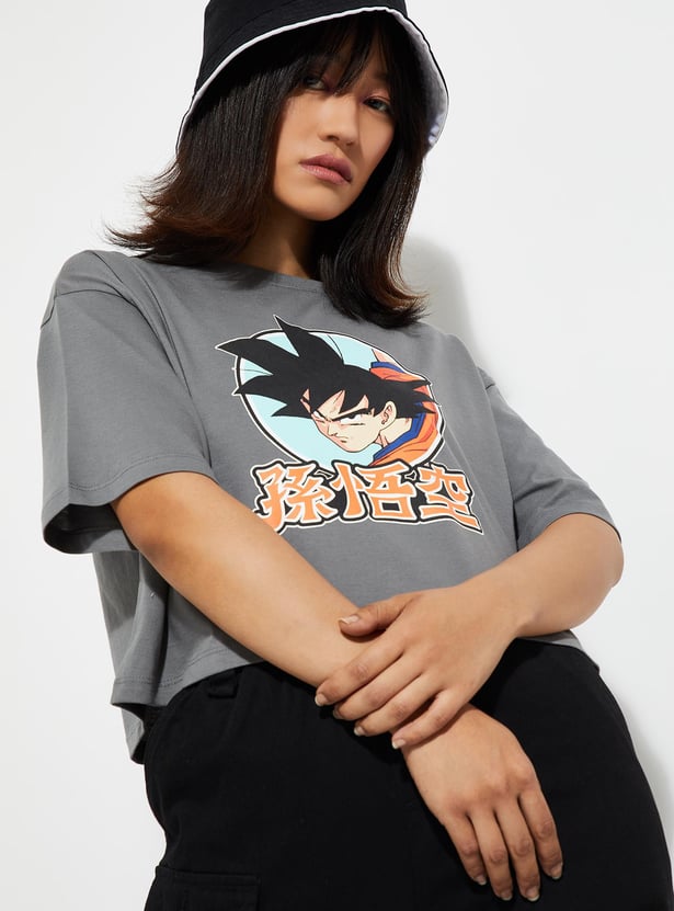 URB_N Women Dragon Ball-Z Printed Crop T-shirt