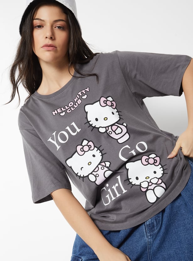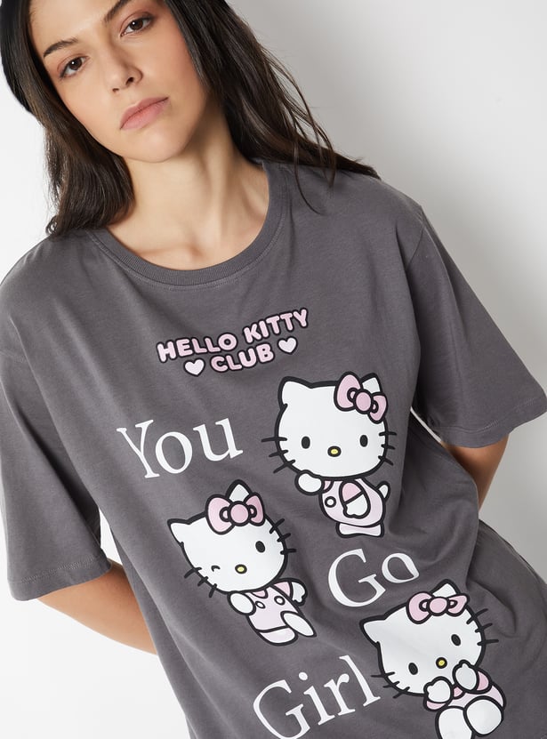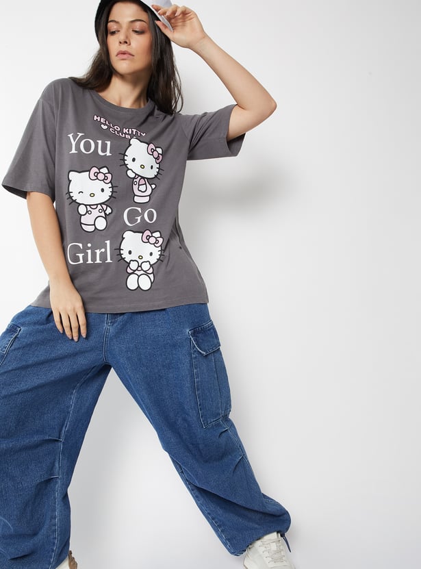 Add playful charm to her wardrobe with this women’s Hello Kitty oversized T-shirt. Designed with a classic round neck and half sleeves, it’s crafted from soft, breathable fabric for all-day comfort.