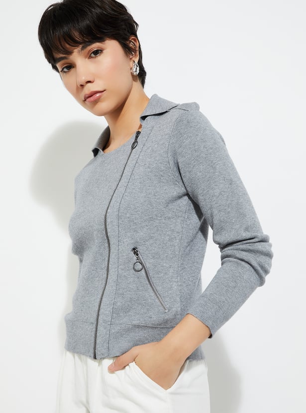 URB_N Women Knit Zip-Up Jacket