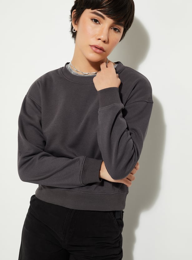 URB_N Women Solid Relaxed Fit Sweatshirt