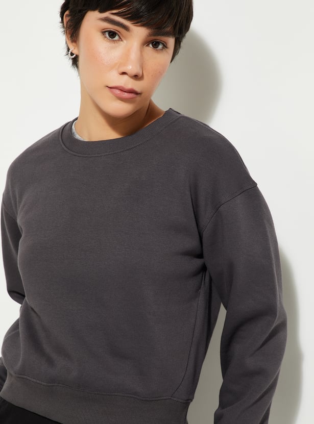 For those extra cosy days, this sweatshirt is sure to match your vibe. The relaxed fit and solid tone give a minimal look. It has a crew neck, drop shoulders, full sleeves, and ribbed trim.