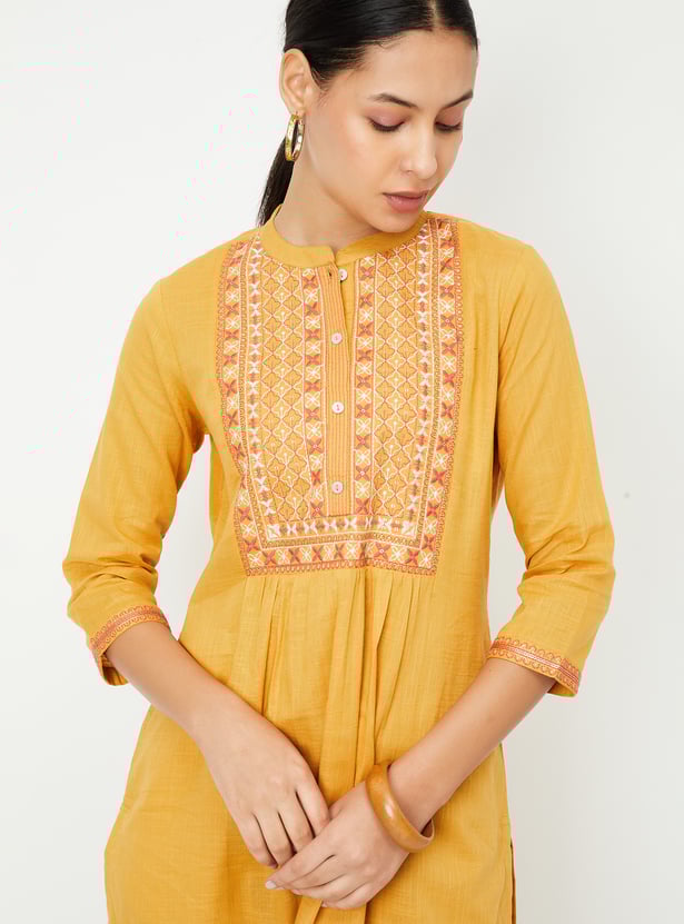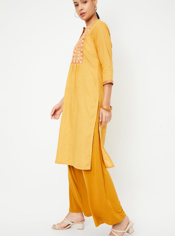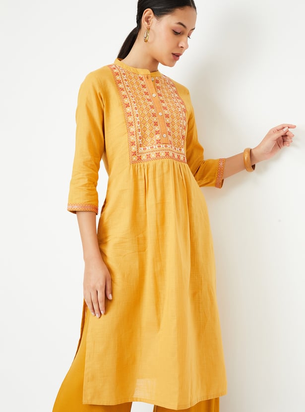 Women Embroidered Yoke Straight Kurta