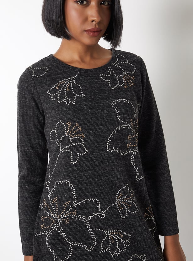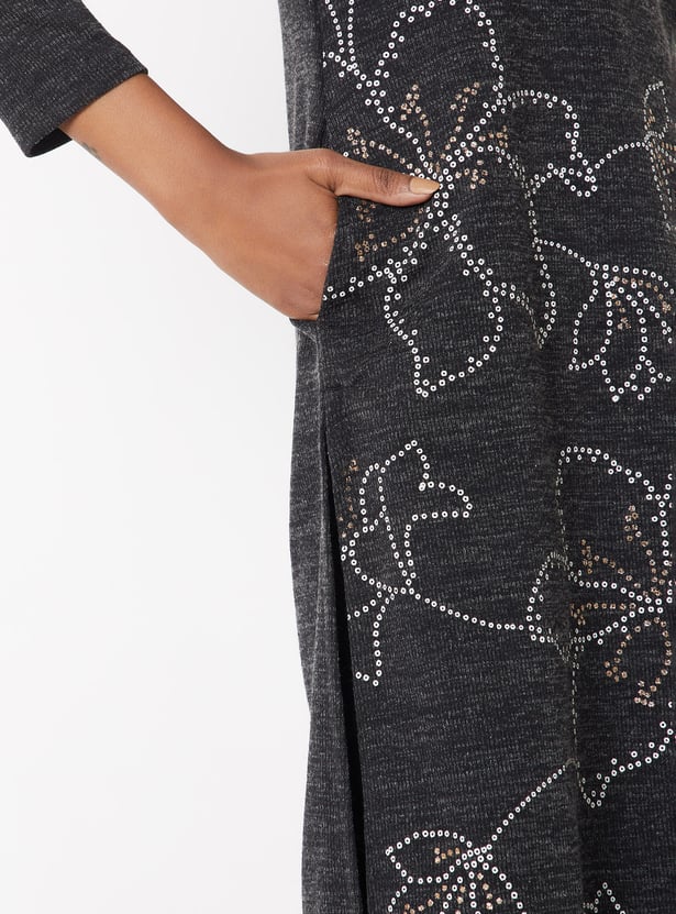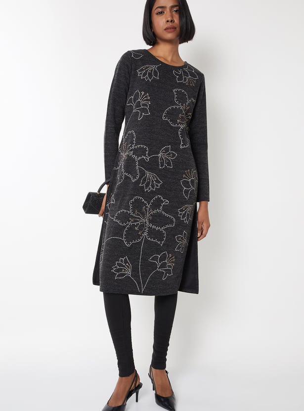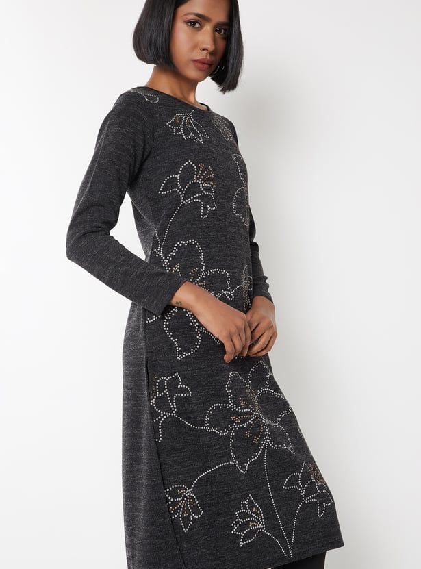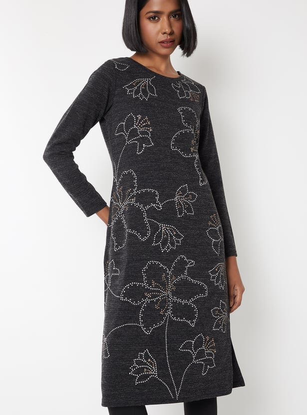 Women Floral Knit Straight Winter Kurta