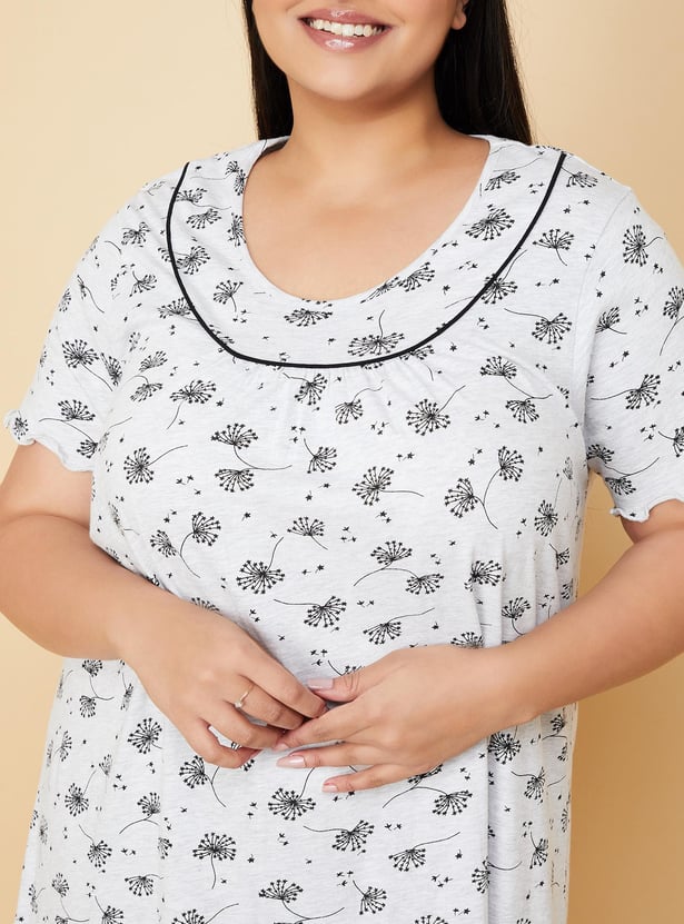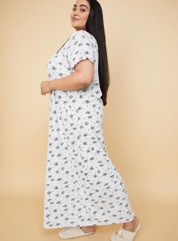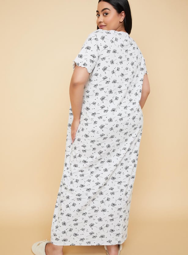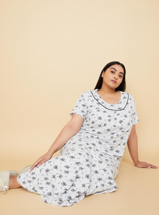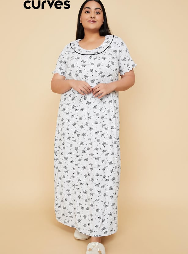 Clock a good night’s sleep in total comfort in this nightgown. It is updated with floral prints all over, a round neck, half sleeves, and an ankle-length profile.