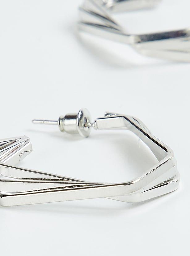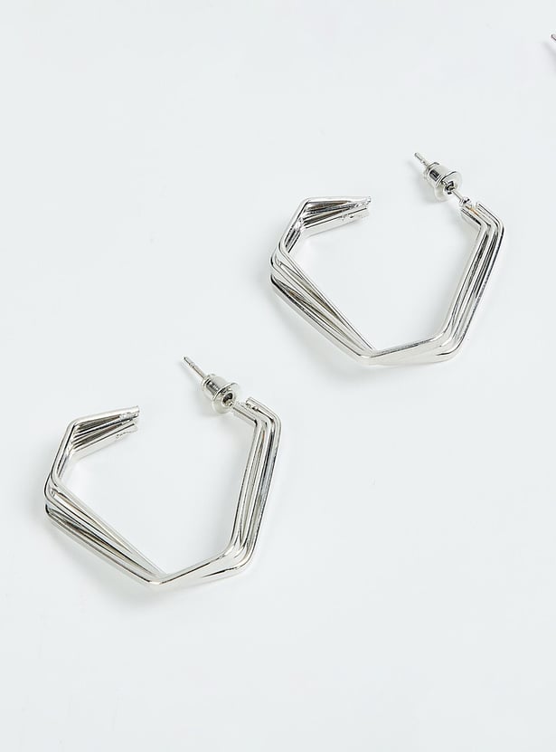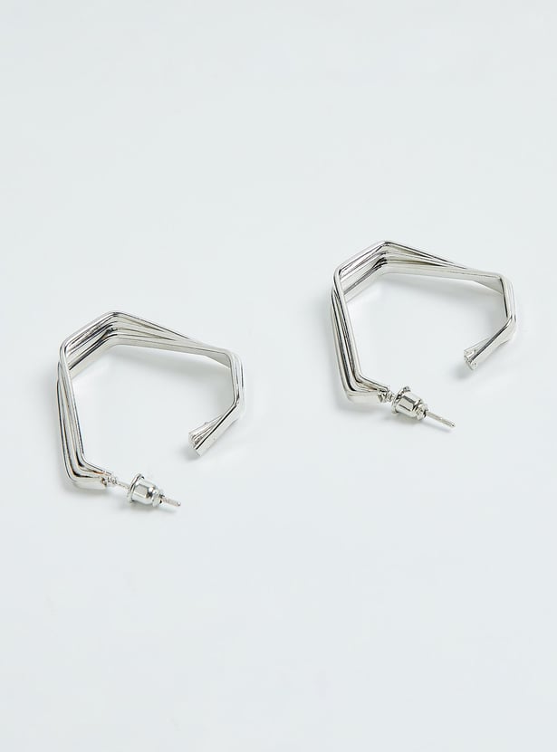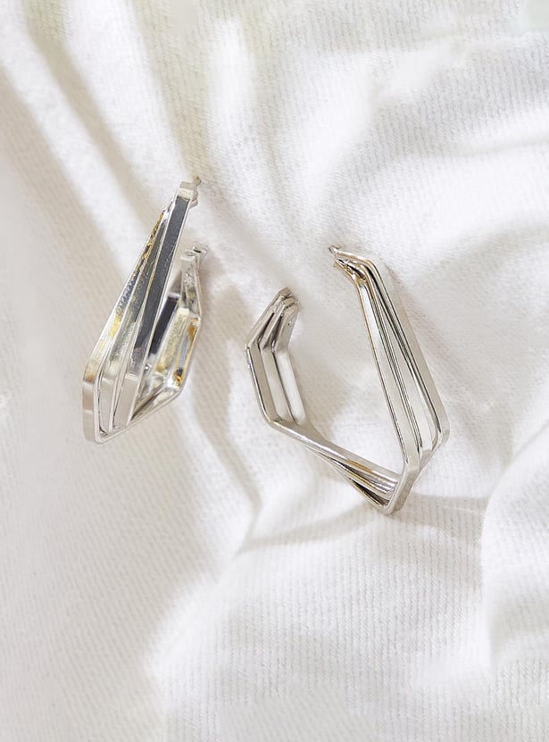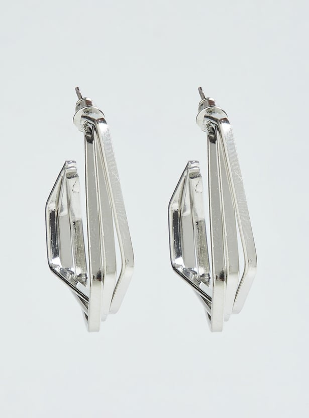 Master the art of minimal elegance with this pair of earrings. Made of metal, this pair showcases a layered geometric shape. They are secured to your ears with post and back closure.
