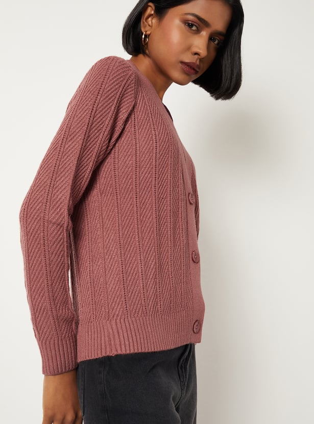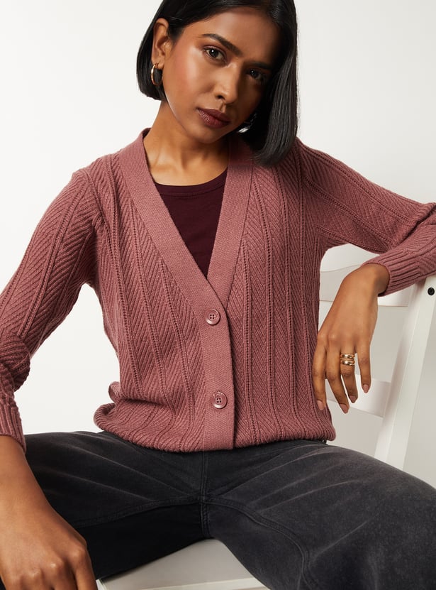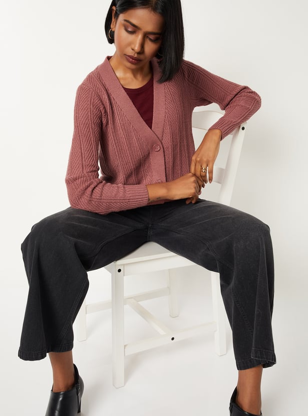 Layer up in style with this knit cardigan, featuring a V-neck, button placket, and full sleeves for a cozy and versatile look. Model Size :
