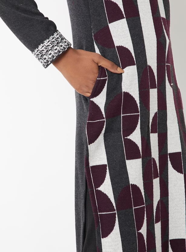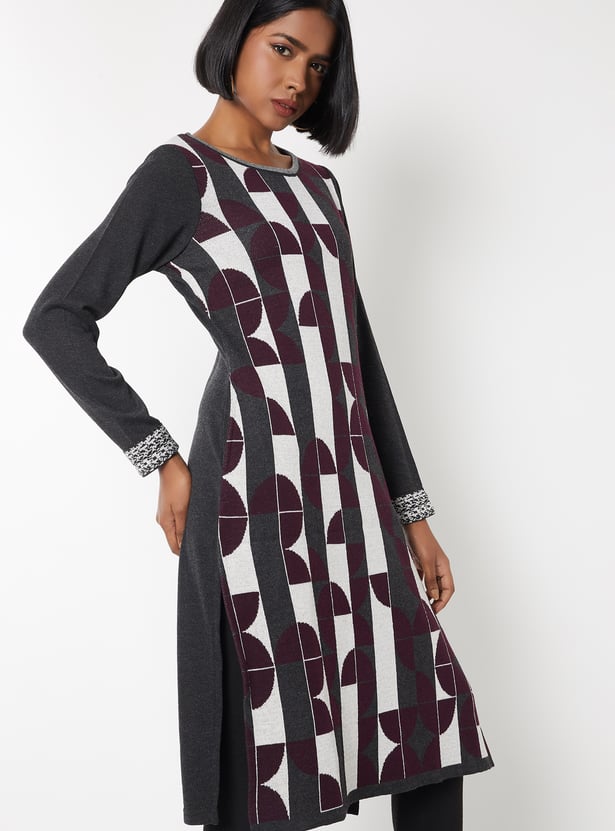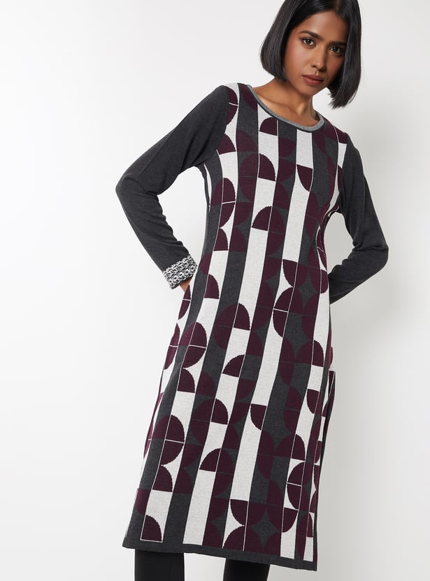 Stay warm in style with this knit straight winter kurta, designed for cozy comfort and effortless elegance. It features a round neck, full sleeves, side slits, and a practical side pocket—perfect for chilly days.