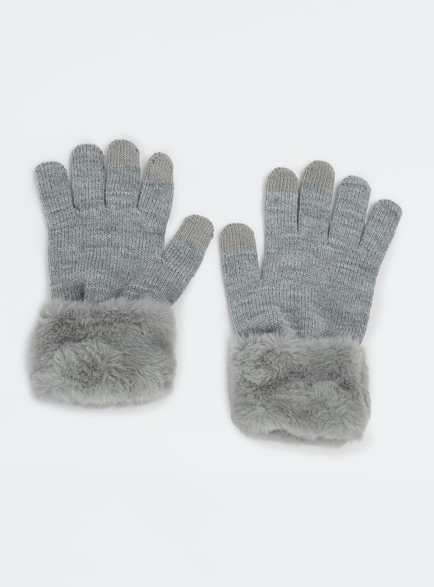 Women Knitted Gloves with Fur