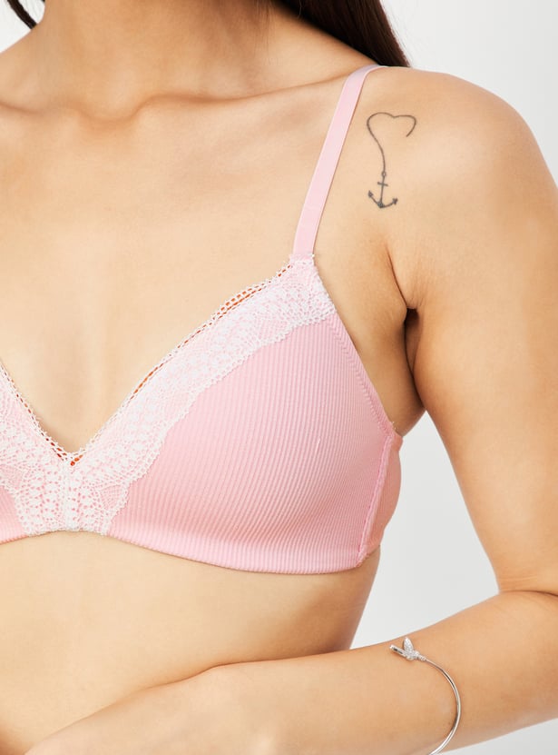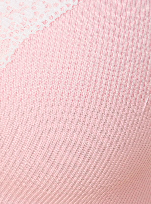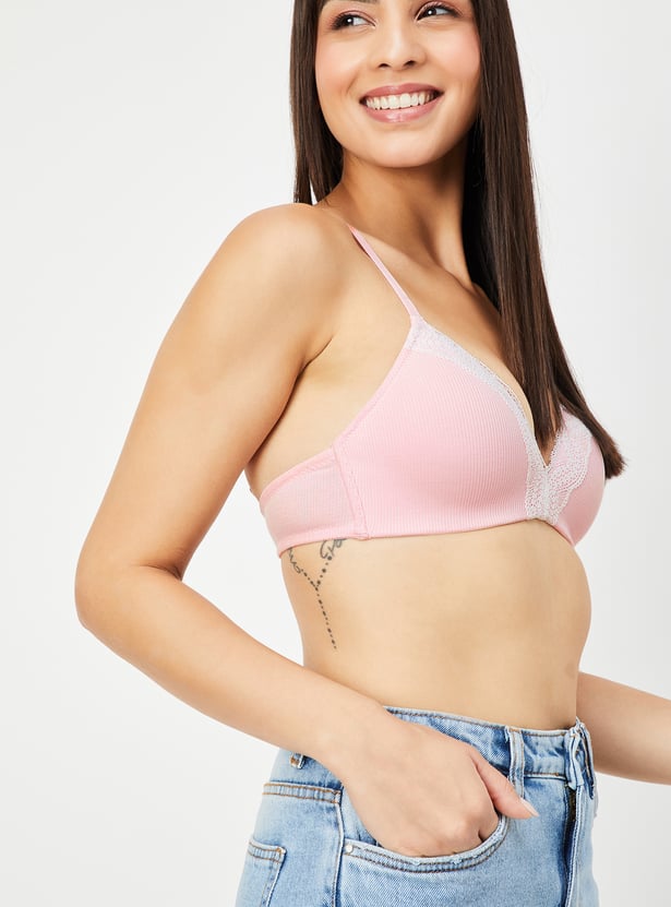 Women Lace Inserts Padded Non-Wired T-shirt Bra