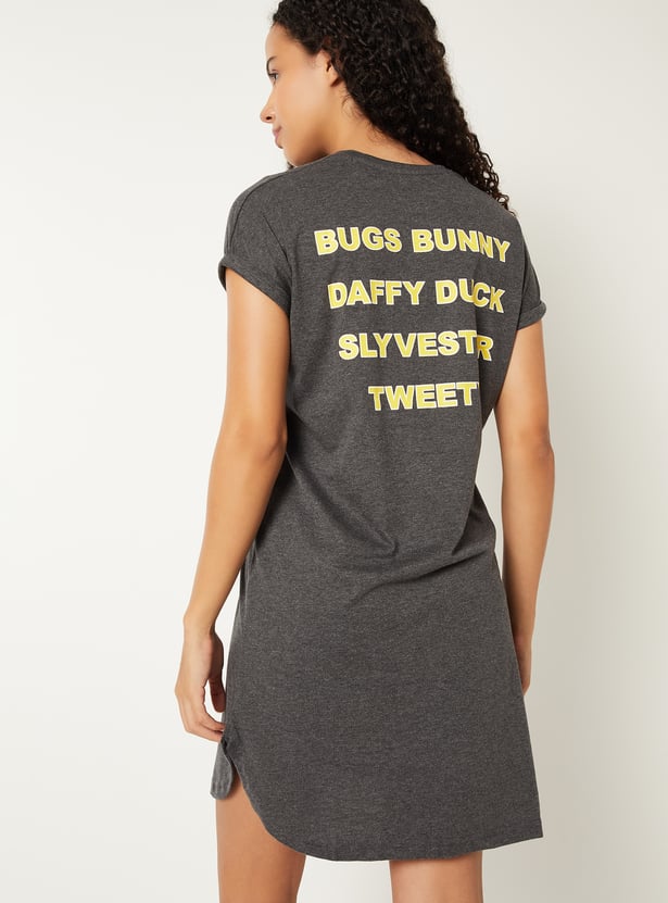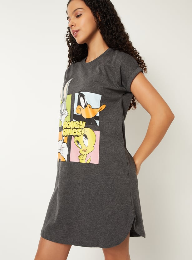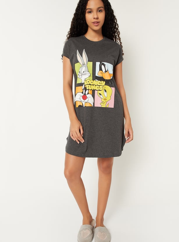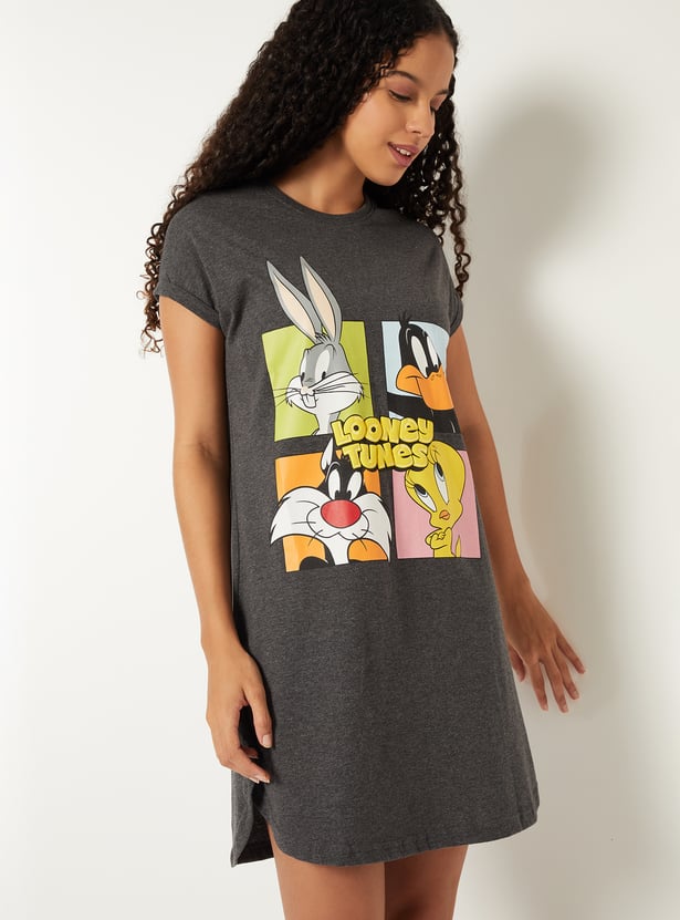 Add a playful touch to your casual wardrobe with this Looney Tunes chemise. Featuring a round neck and half sleeves, it offers a relaxed and comfortable fit for everyday wear.