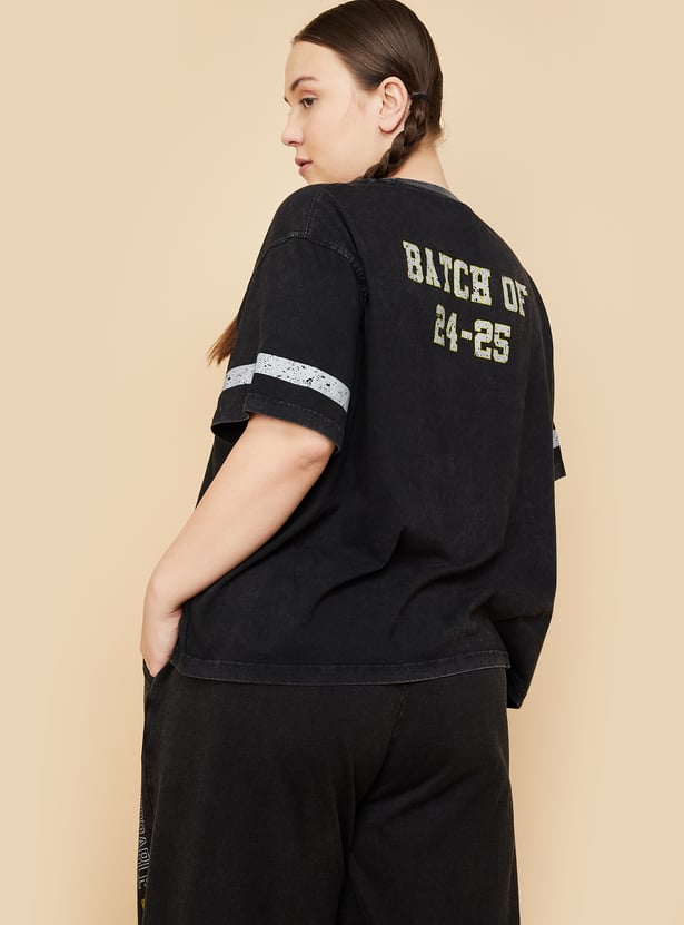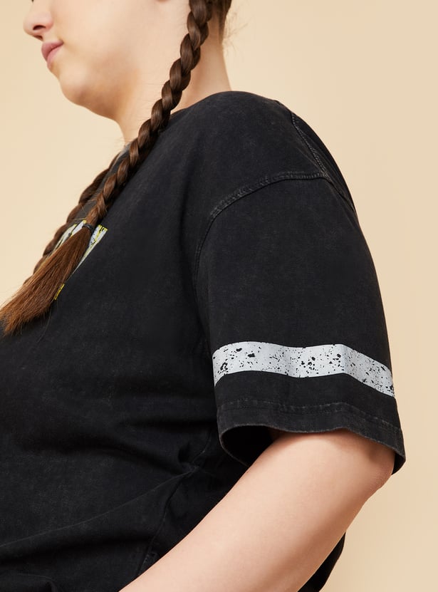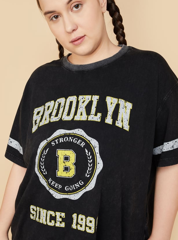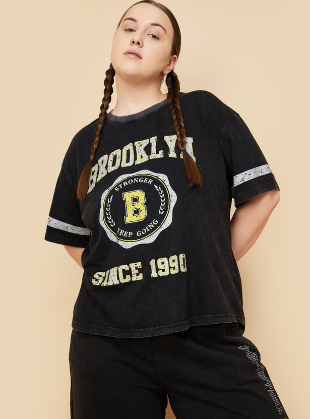 A versatile piece that combines effortless comfort and style, this T-shirt is sure to become a wardrobe favourite. It features a round neck, half sleeves, and an oversized profile for roomy comfort. The acid wash finish gives a vintage-inspired look.