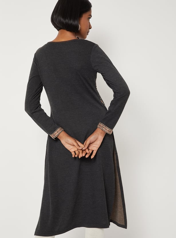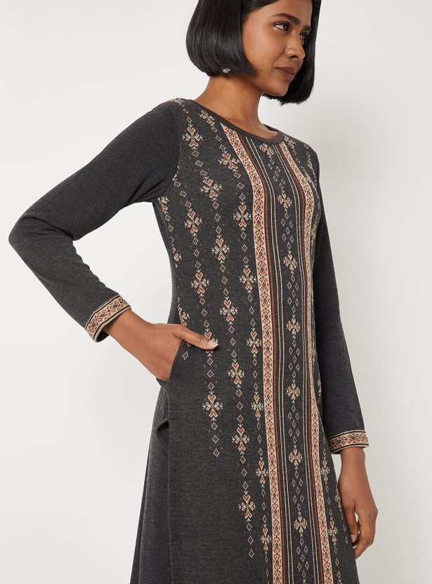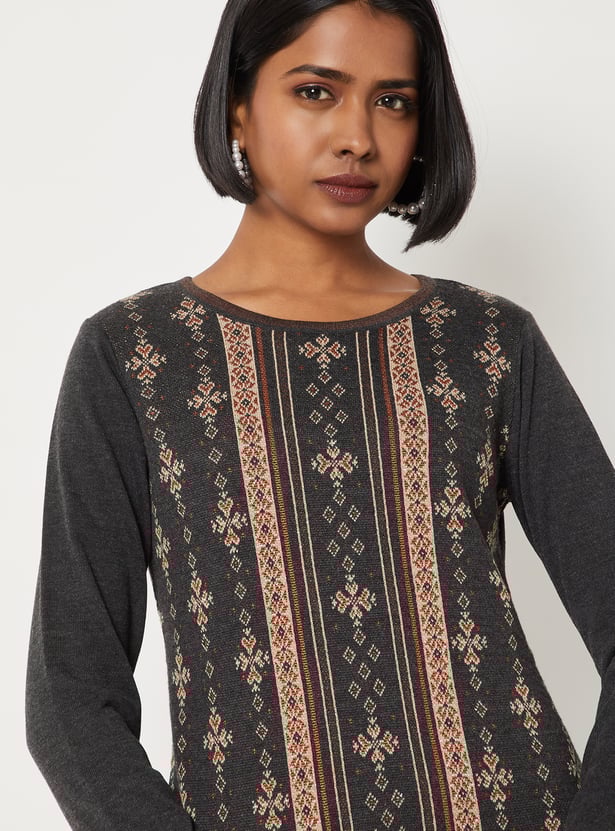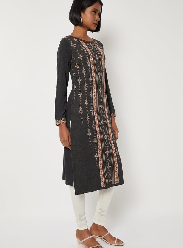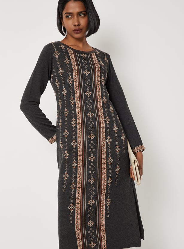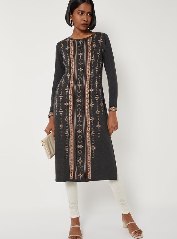 Women Patterned Knit Straight Winter Kurta