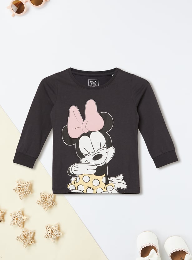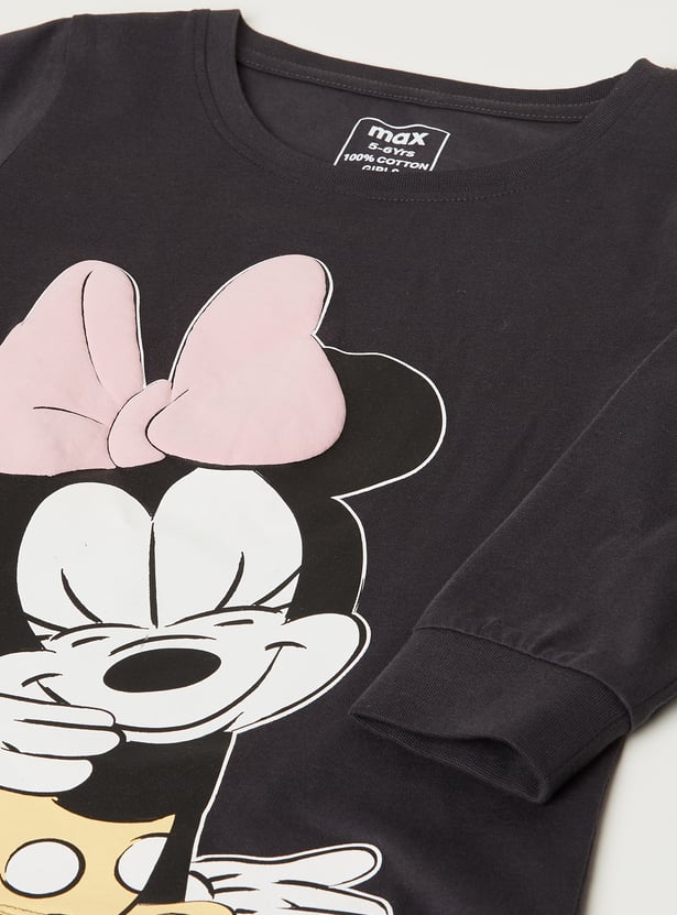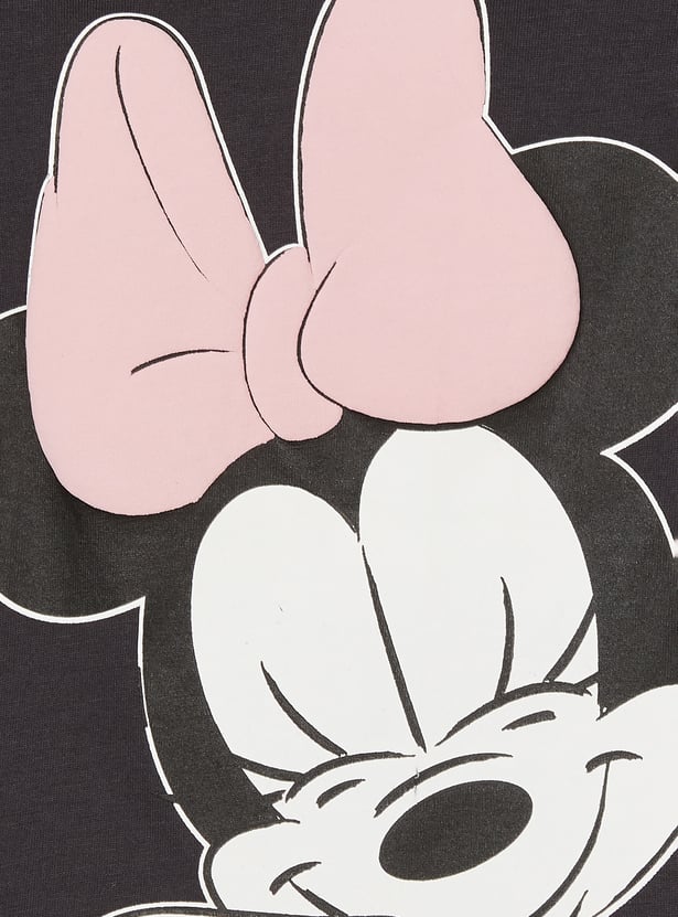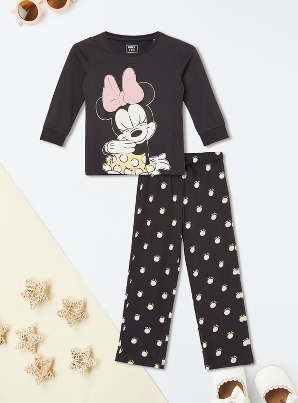 Add a touch of fun to your sleepwear with this Minnie Mouse printed PJ set, featuring a T-shirt with a round neck and full sleeves, paired with matching comfortable pyjamas. Perfect for cozy nights and relaxed mornings.