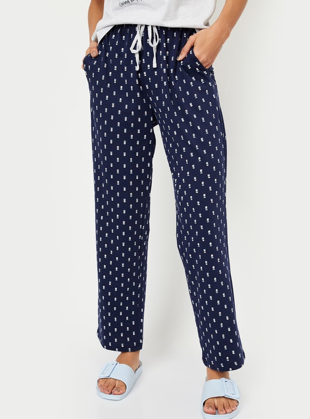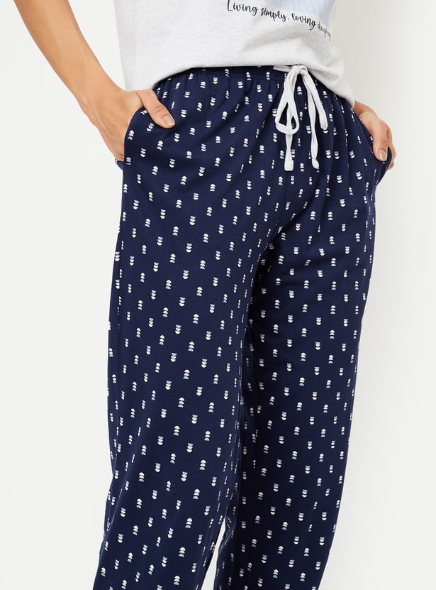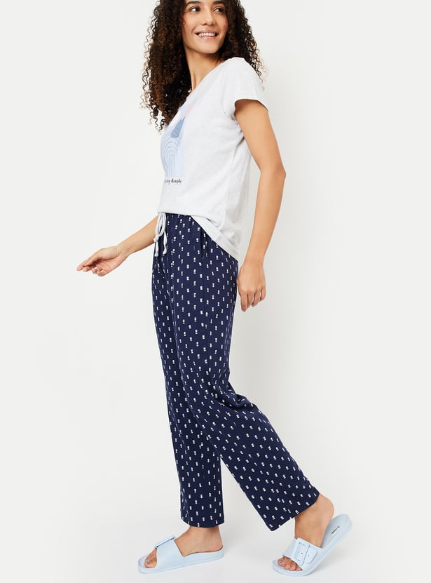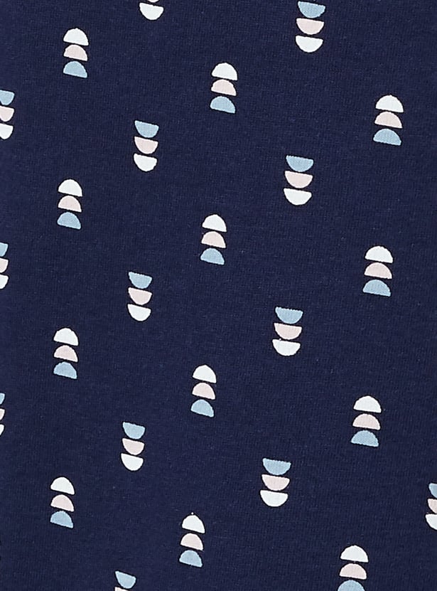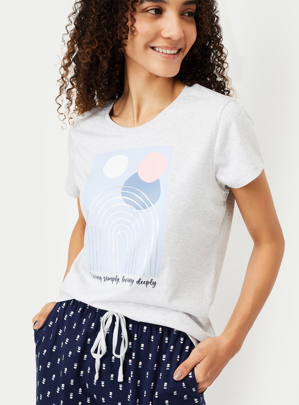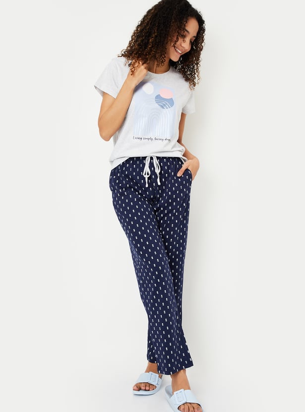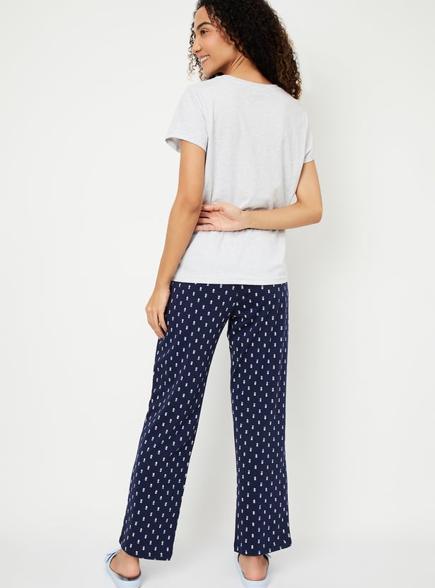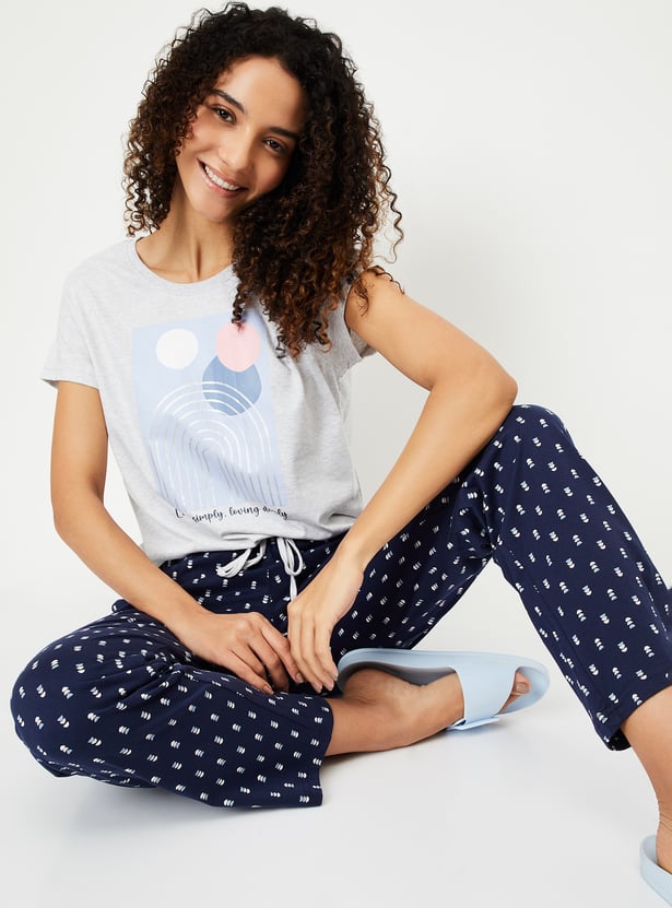 Sweet dreams start with this set. It includes a T-shirt with a beautiful print, a round neck, and half sleeves. The pair of contrasting pyjamas feature a drawstring waist, side pockets, and all-over prints.