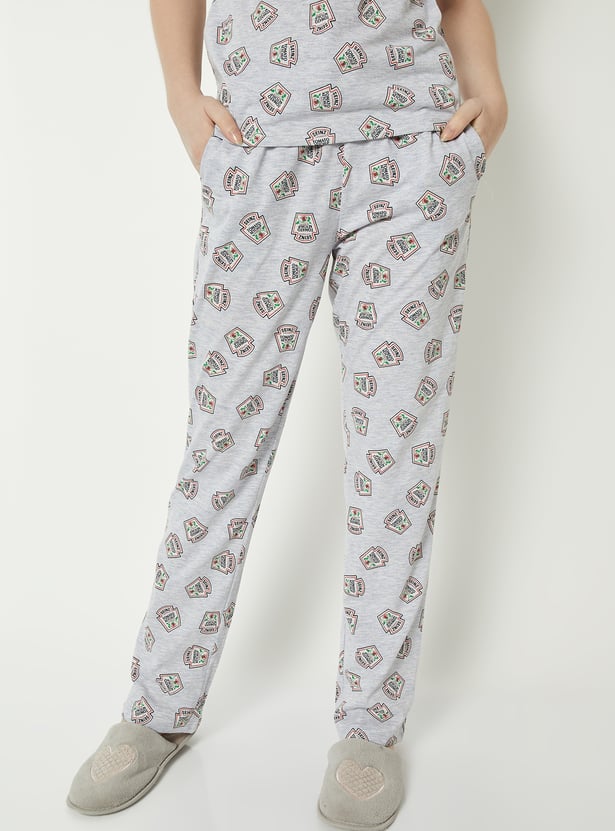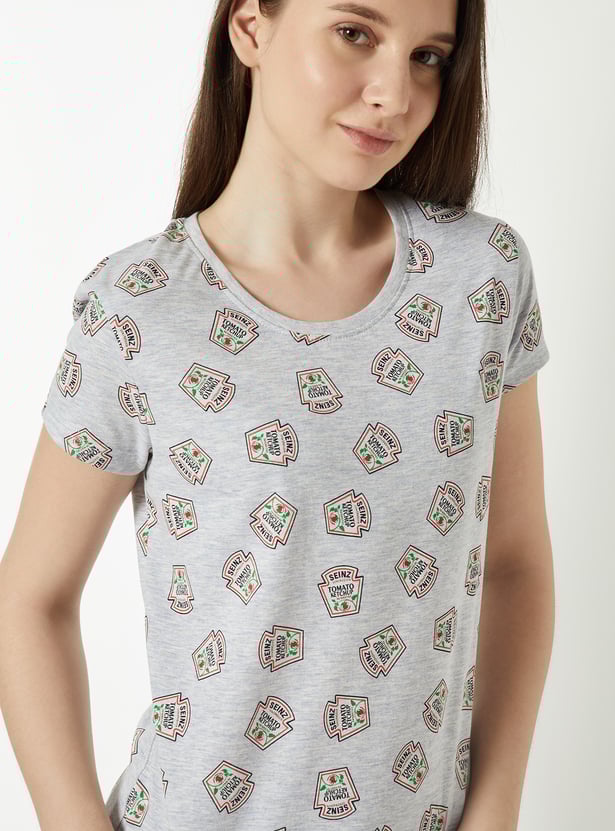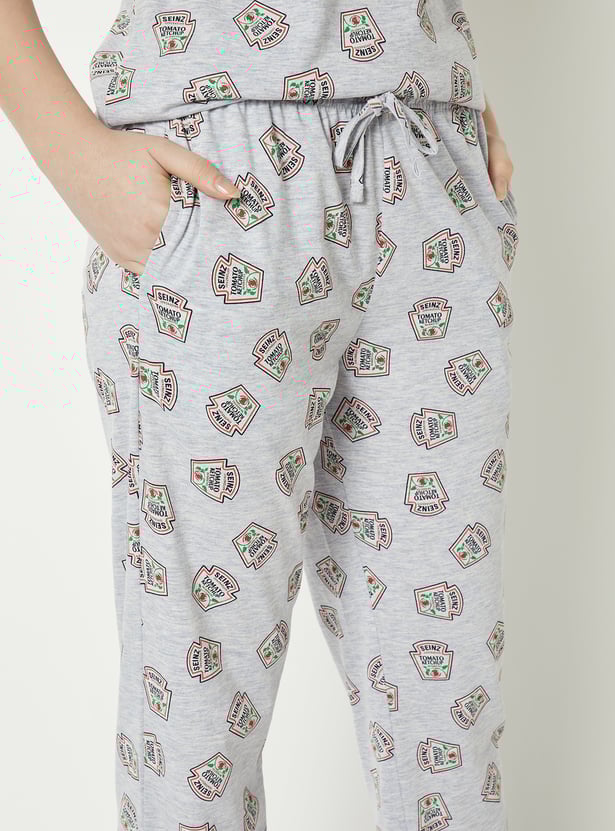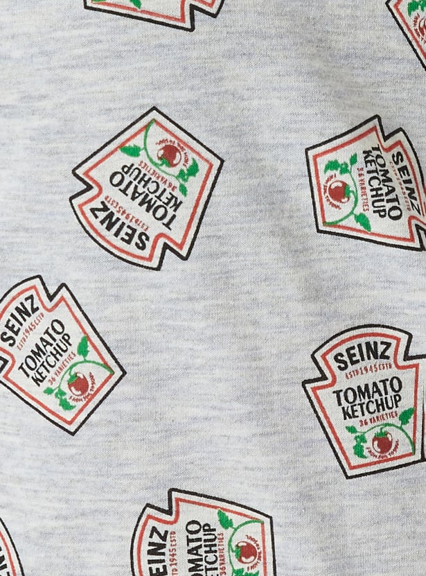 Add a fun twist to your sleepwear with this printed set featuring a playful Heinz ketchup print. The t-shirt comes with a classic round neck and half sleeves for easy comfort. Paired with matching pyjamas featuring a drawstring waist and side pockets, this set is perfect for relaxed, cosy nights in.
