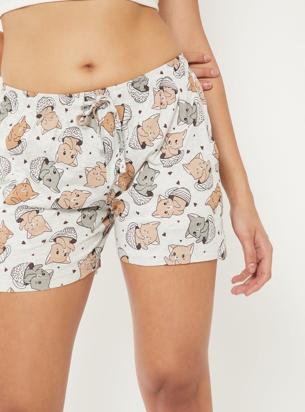Printed shorts designed with an elasticated waist and adjustable drawstring for a secure, personalised fit. Finished with functional side pockets, they offer everyday comfort for lounging, quick errands, and casual outings.