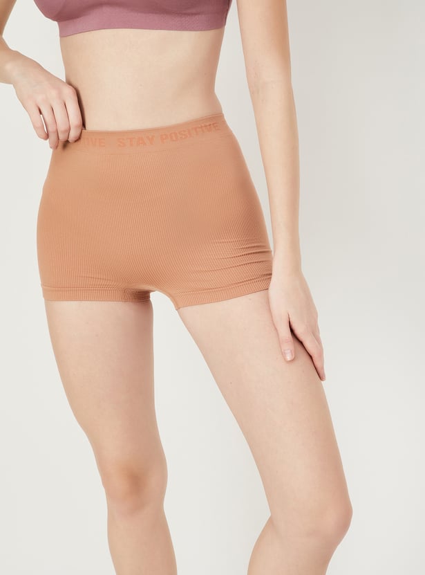 Elevate comfort and flexibility with this pair of boy shorts. Designed with a ribbed surface and an elasticated waistband, they offer a perfect blend of ease and style for everyday wear.
