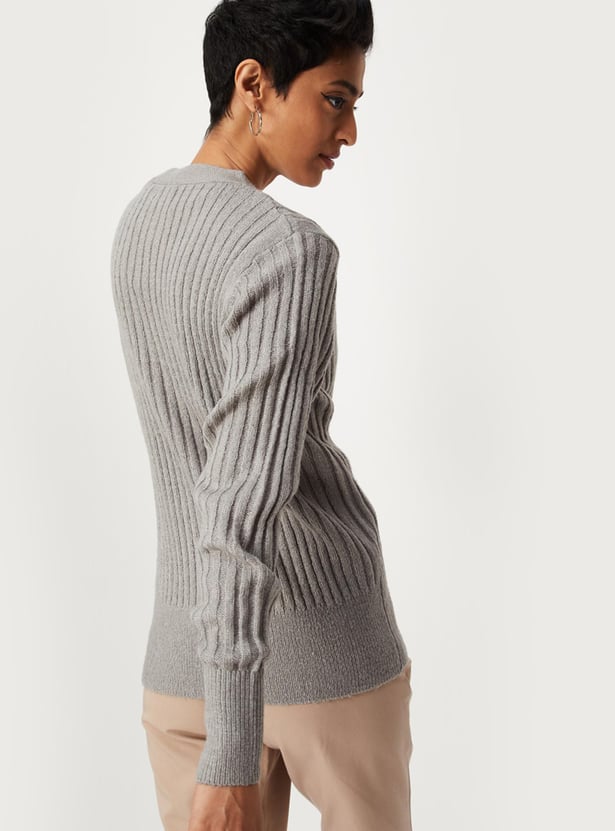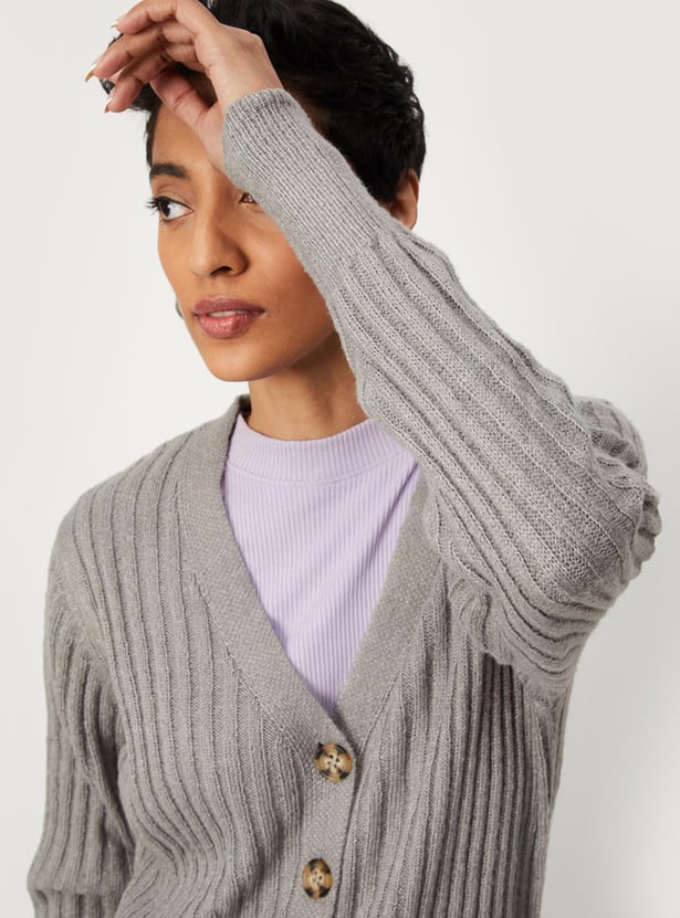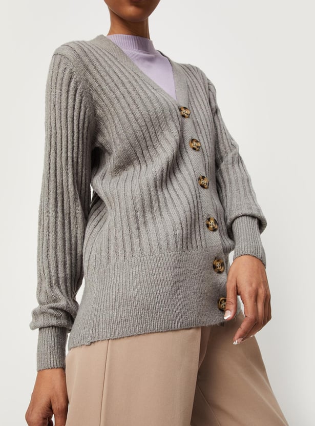 Women Ribbed V-neck Cardigan