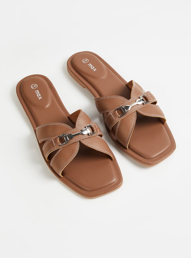 Step into effortless style with these slip-on flats, featuring a chic buckle detail on top. Designed with a modern square toe, they blend comfort with contemporary elegance, making them perfect for everyday wear.