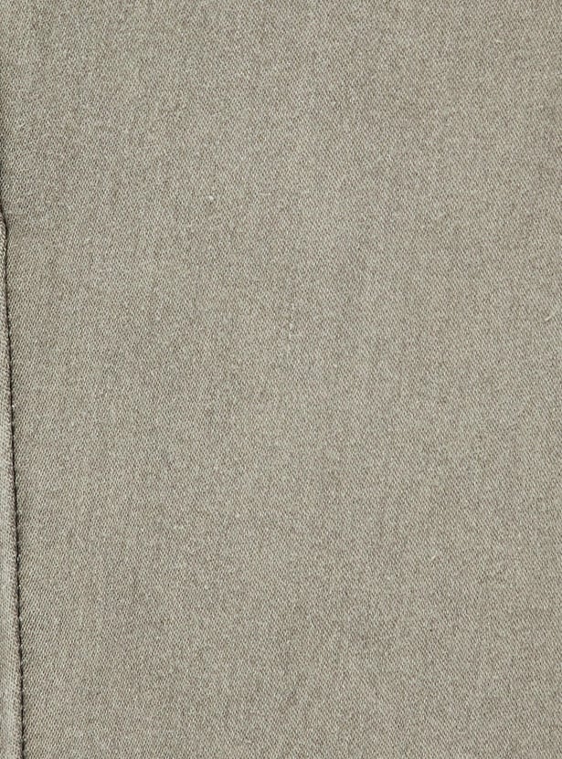An all-season favourite, this pair of jeans. It has a button closure, a mid-rise waist with belt loops, and 5 pockets. The faded design and ankle-length profile elevate the style.