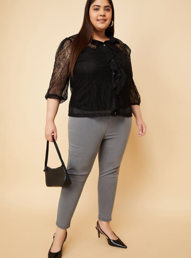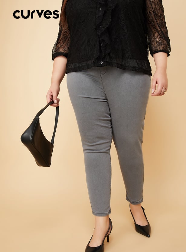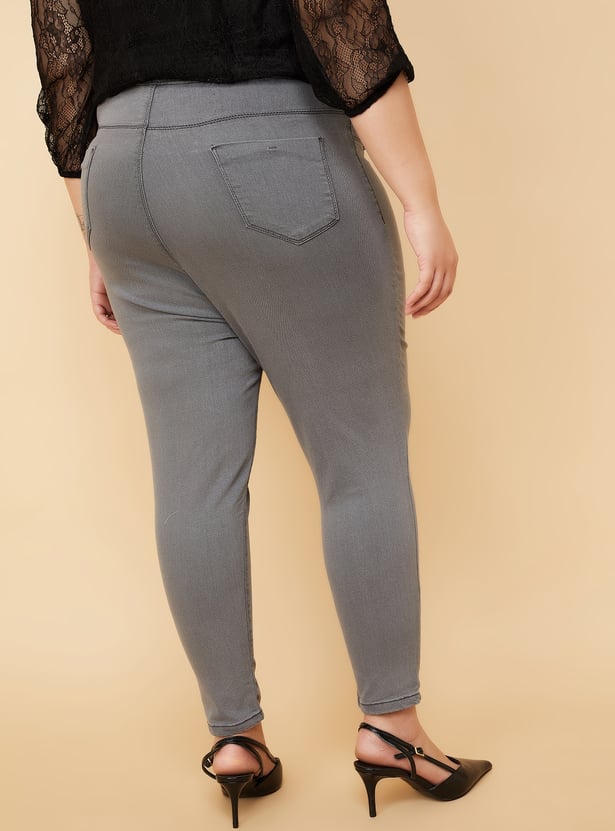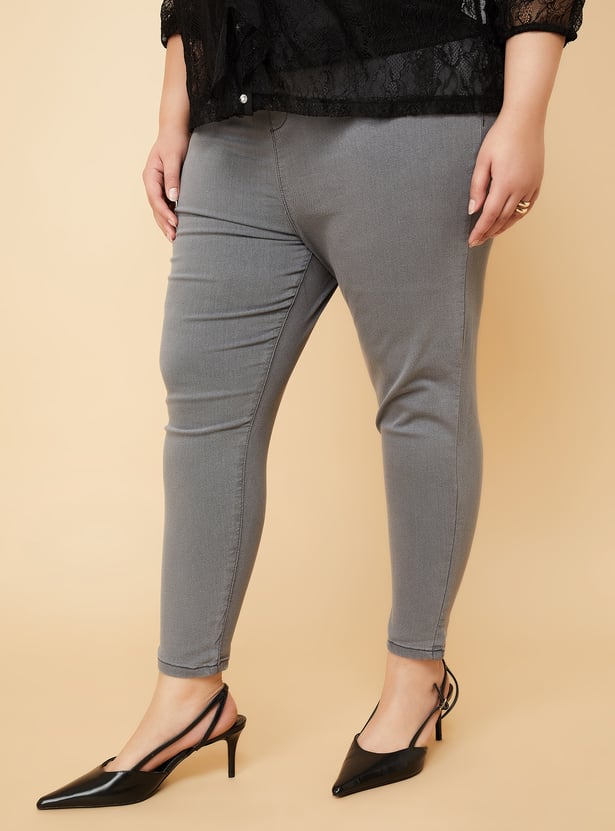 This pair of solid jeggings with an elasticated waist and a five-pocket design is a must-have for every wardrobe.