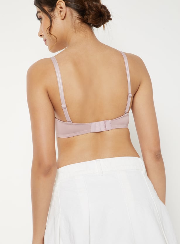 This solid padded non-wired T-shirt bra offers gentle support and all-day comfort with its smooth cups and adjustable straps. Designed with a secure back closure, it ensures a seamless fit under any outfit.