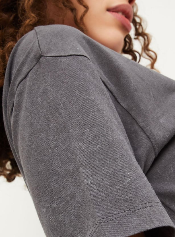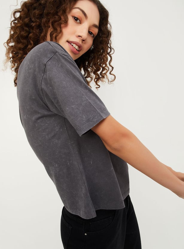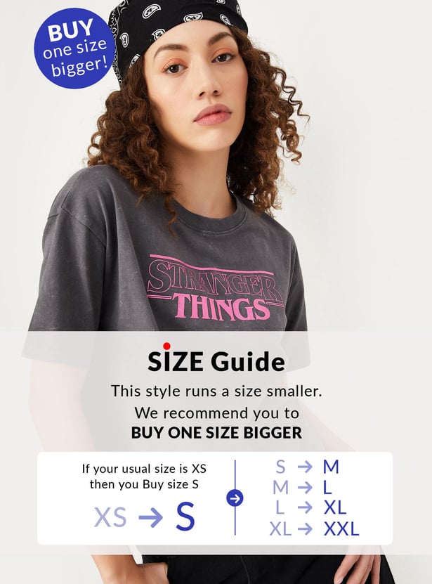 Elevate your casual look with this T-shirt featuring 'Stranger Things' print, round neckline and half sleeves.