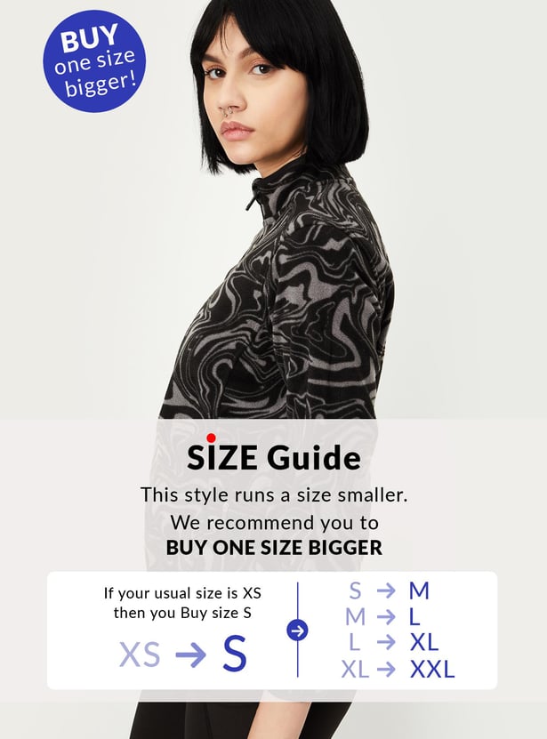 Update your winter collection with this plush jacket styled with a mock collar, zip front, full sleeves, and waist pockets. Layer this jacket over your tee and team it up with tights and sneakers.