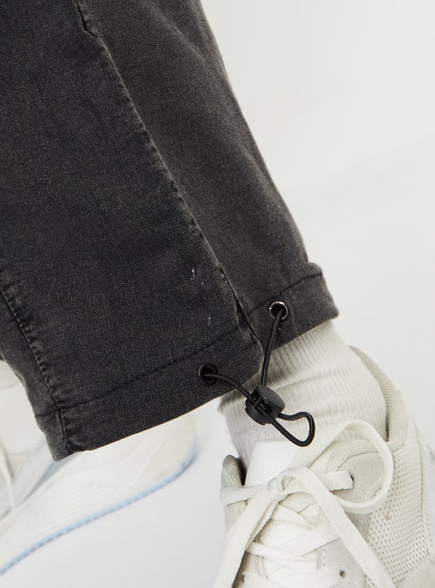 These washed cargo parachute pants offer a relaxed, laid-back style with a drawstring closure for a comfortable fit. The cargo pockets add a functional touch, making them perfect for casual wear.